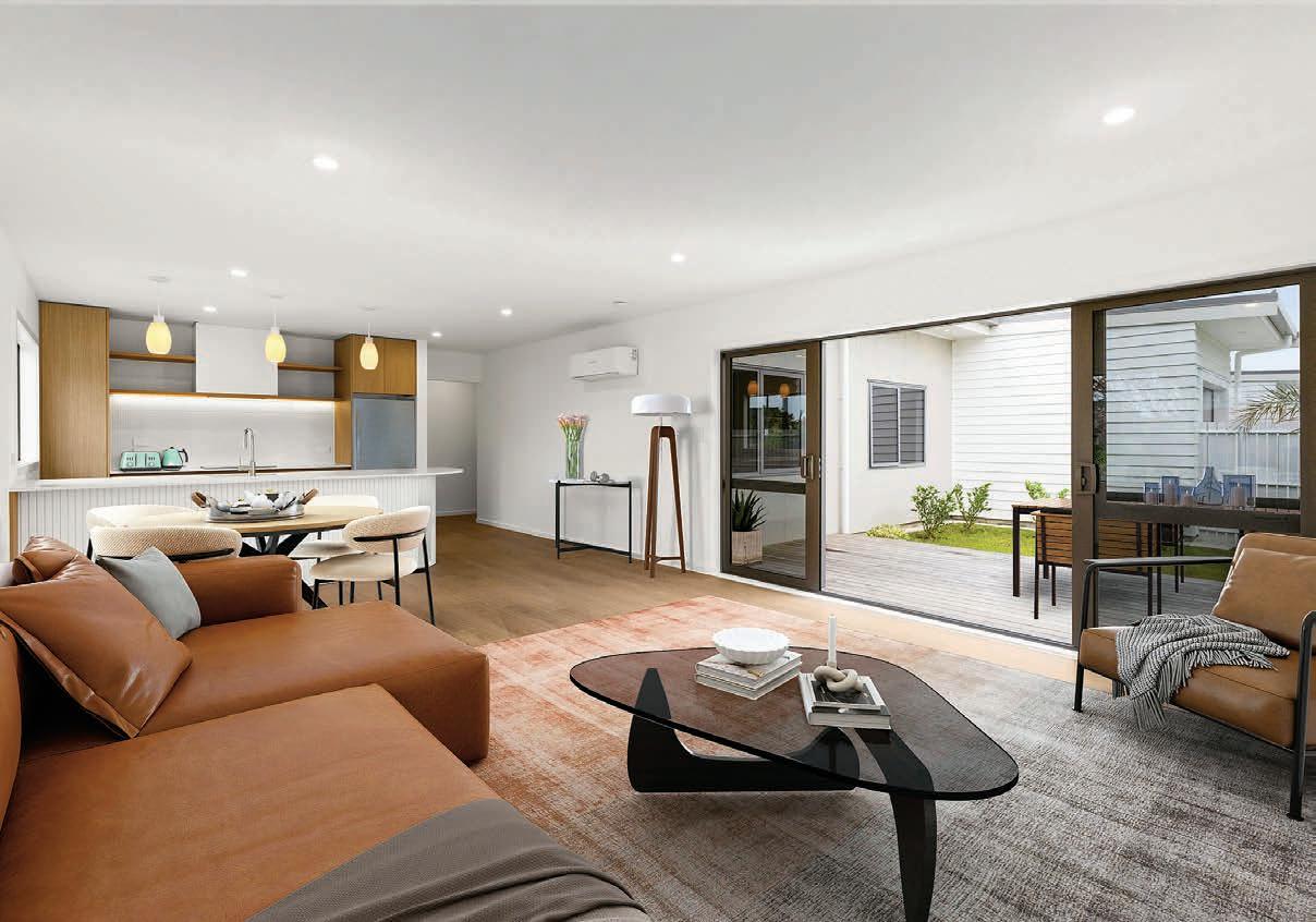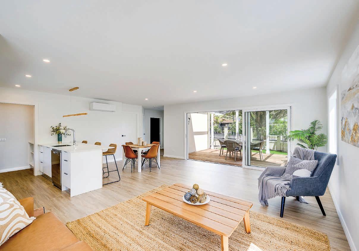 • Open plan kitchen/dining/living. • Gas hot water and cooktop.