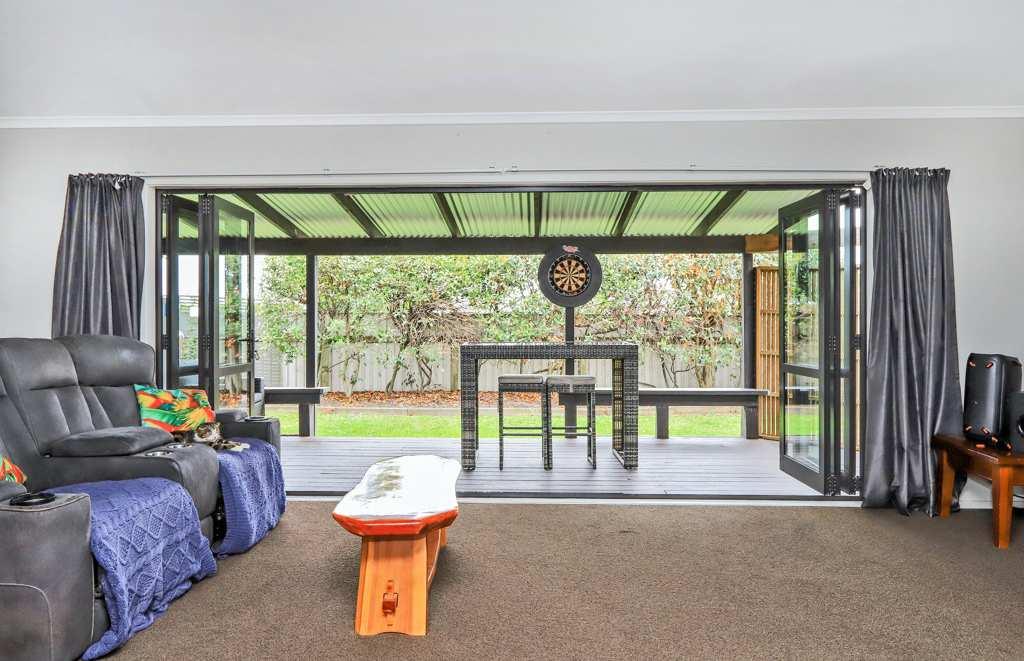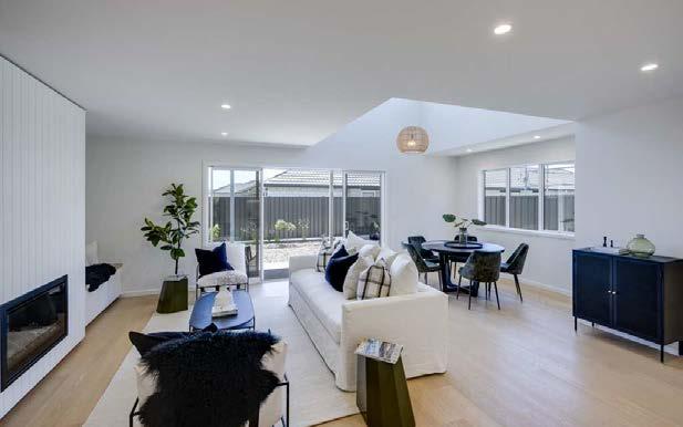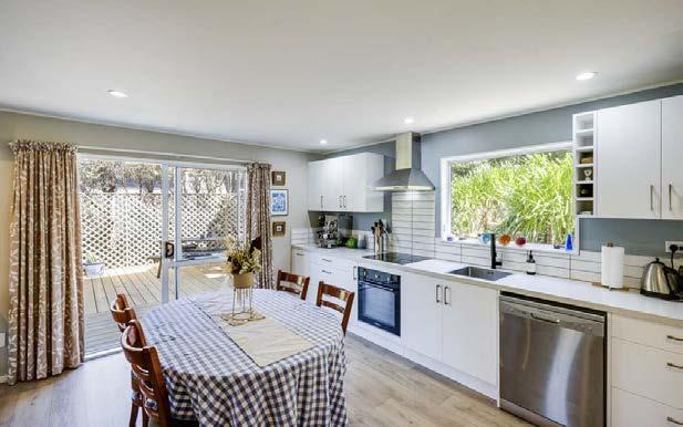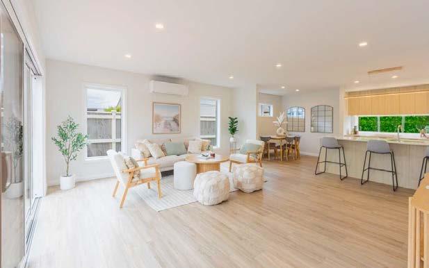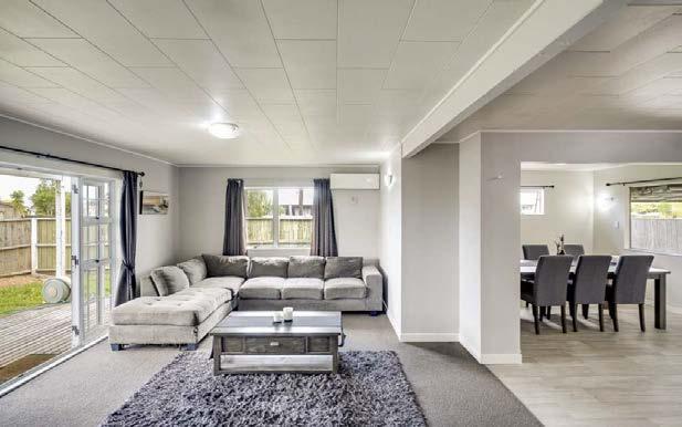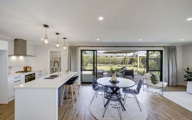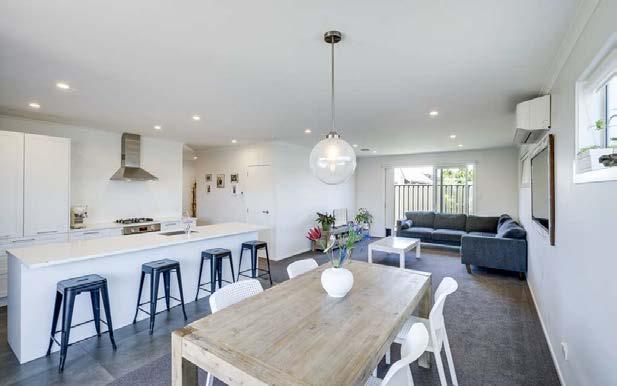 Theopen-planlivingareacreatesacomfortableand practicalspaceforeverydaylife.DoubleFrenchdoors o焔thelivingareasensureeasyflowontothecovered deckingspace.