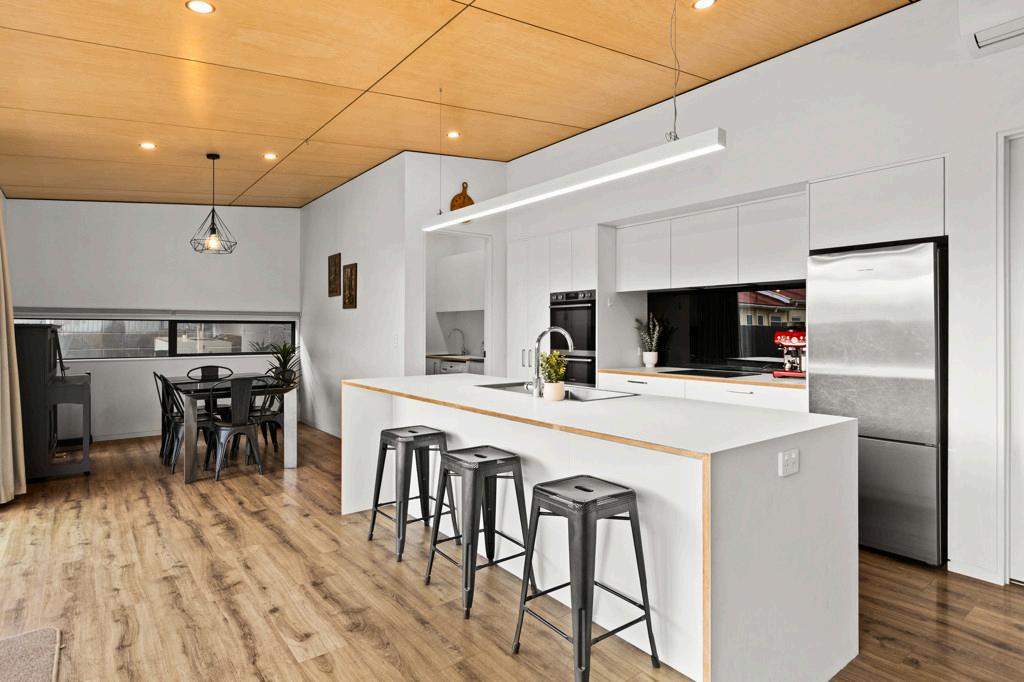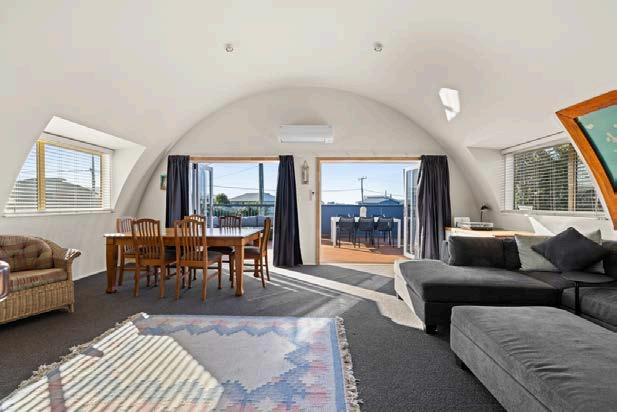 Fullyfurnishedandreadytoenjoy,thisstylishhome offersopen-planliving,sun-soakeddecking,sea viewsandbeachsideease.Featuringthreebedrooms, amodernbathroom,heatpumpandgaragestudio withkitchenetteandbathroom(unconsented).A distinctiveroofandsmartlayoutmakethiscoastal retreattrulyspecial.