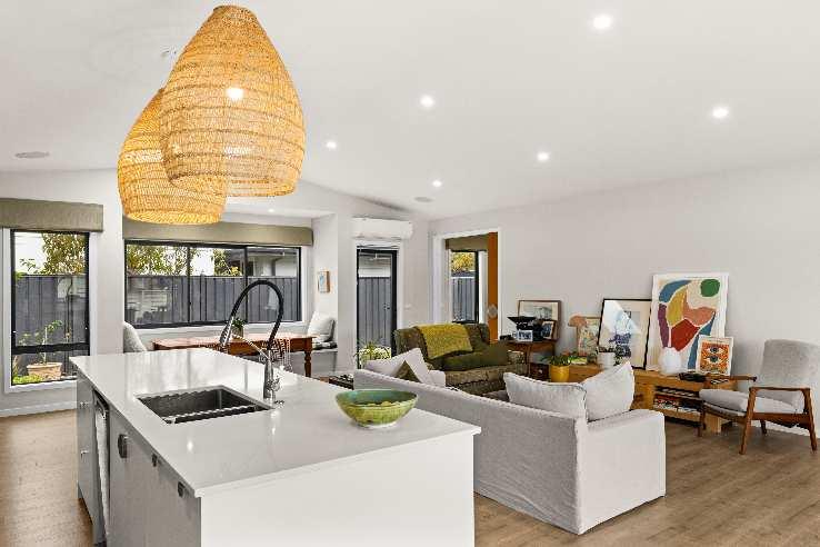 Thisspaciousthree-bedroomhomeo焔ersopen-plan livingwithawell-designedkitchenandseamless indoor-outdoorflowtoacoveredcourtyard.The mastersuiteincludesawalk-inwardrobe,ensuite, andaccesstothegarden,whiletwoadditional bedroomsshareafamilybathroom.Aseparate laundry,homeo焔ice+hobbyroom.