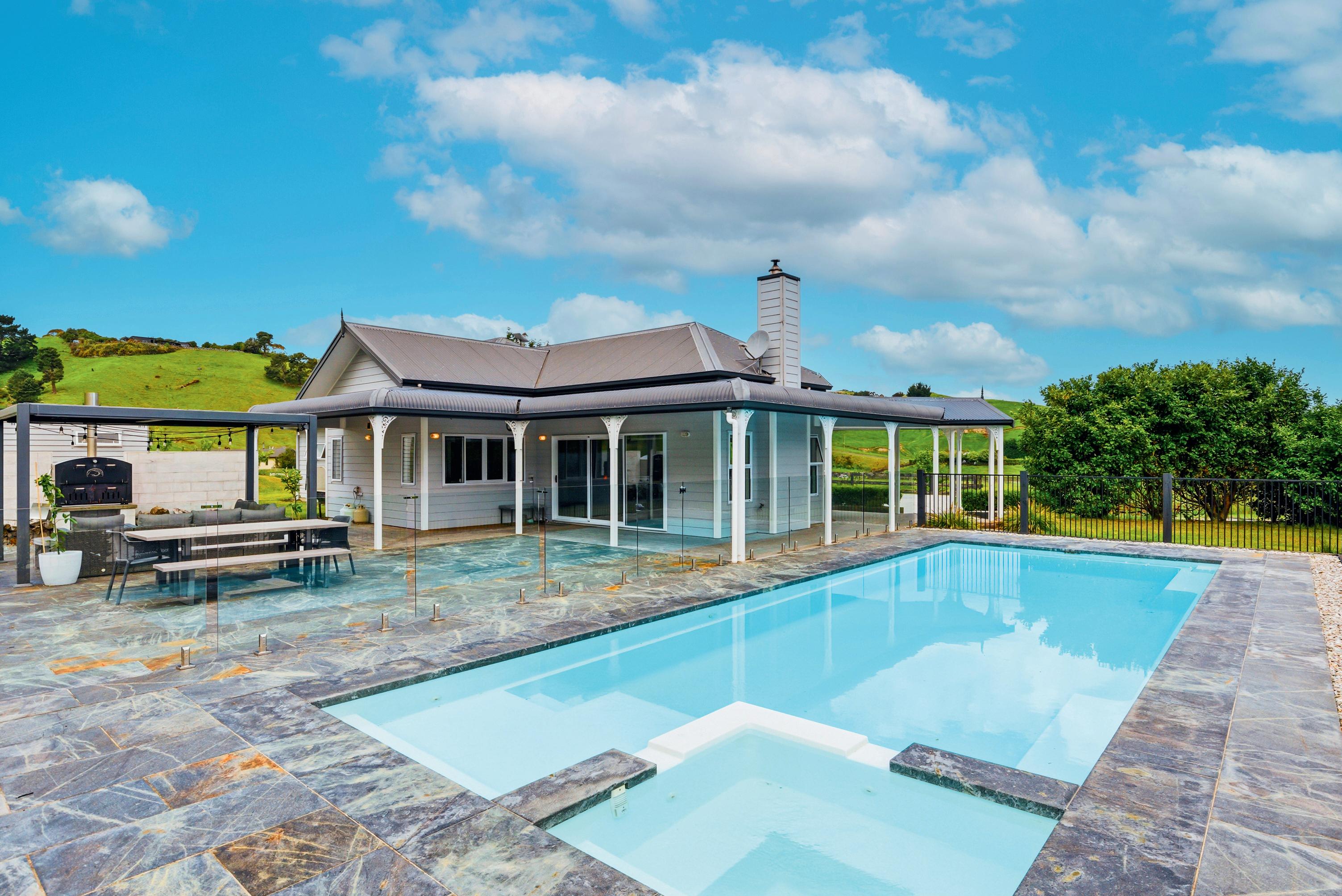 Nestled beneath the bold ridgeline of Grant Road in Mapara, this stunning lifestyle property occupies a position that looks out across the rolling folds of the valley and into the open expanse of Central North Island sky. 40 Grant Road, Kinloch reveals a lifestyle that defies expectations of country living. Set across 5.2ha Vmore or lessW, the property showcases a dynamic natural topography that forms a beautiful signature of the landscape. Accomodation comprises four bedrooms including a separate cabin\ studio\workspace, two bathrooms, and a study, offering flexibility. Contemporary openMplan living, a spacious kitchen, stone accents, and effortless flow lead to wide verandahs, a resortMstyle pool, spa and expansive alfresco terrace. Here, afternoons drift between sky and water, before settling into evenings fireside as the sky deepens into indigo. Retrofit double glazing, a pellet fire, highMstud shed, and a double, internalMaccess garage ensure comfort and functionality. A truly remarkable lifestyle setting.