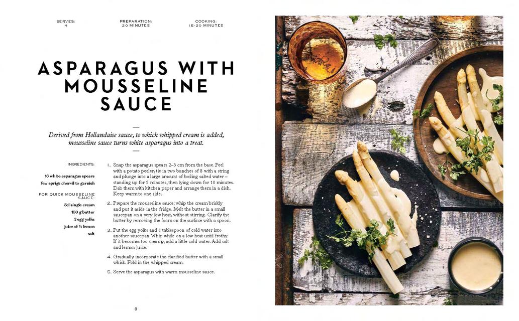 The chapters are set out like a classic French menu, allowing you to mix and match according to what’s in season. Recipes include classics, such as Pistachio and Almond Croissants, Chicken and Prune Pie and Salmon en Croute, to the more modern Beetroot Tarte Tatin and Mozzarella, Nectarine and Hazelnut Salad. The desserts are lick-the-spoon-worthy affairs, such as the Chocolate and Pear Gâteau, Easy Homemade Profiteroles and Mamie’s Apple Tart.