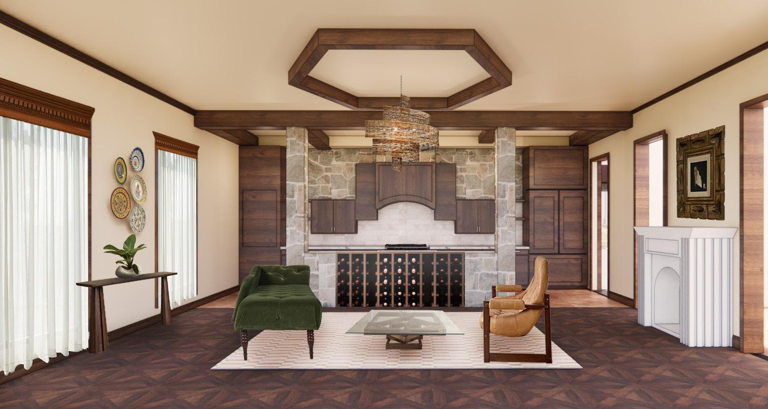 The materials in these spaces are light and fresh, perfect for hosting and connecting with others. Warm browns and other neutrals invite users to unwind, reflecting the playful element of wine and communal enjoyment.