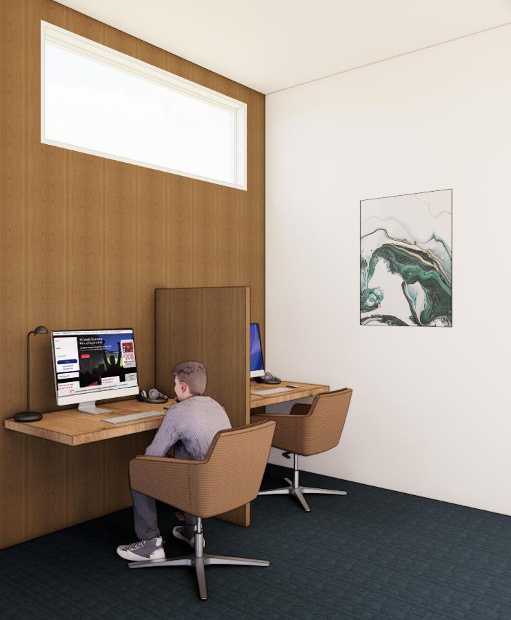 Large windows create a place that iis enticing and inviting for students who may feel isolated or nervous about handling finances.