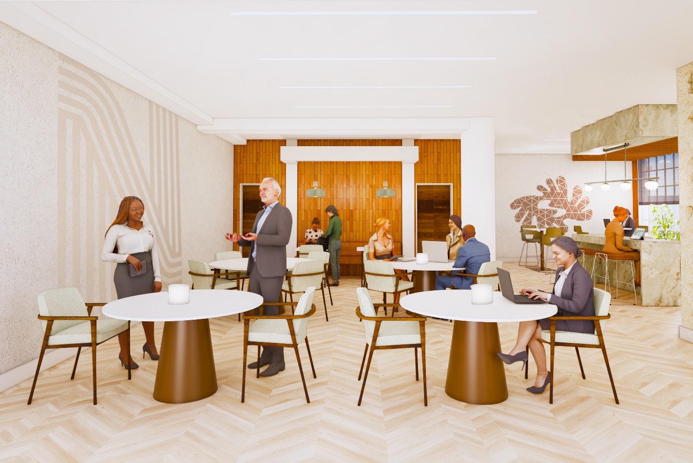 The Town Hall provides flexible space for firm-wide events and gatherings. Meanwhile, this area can be considered an addition to the Work Cafe, giving employees even more space to diversify their work environment and socialize with colleagues.
