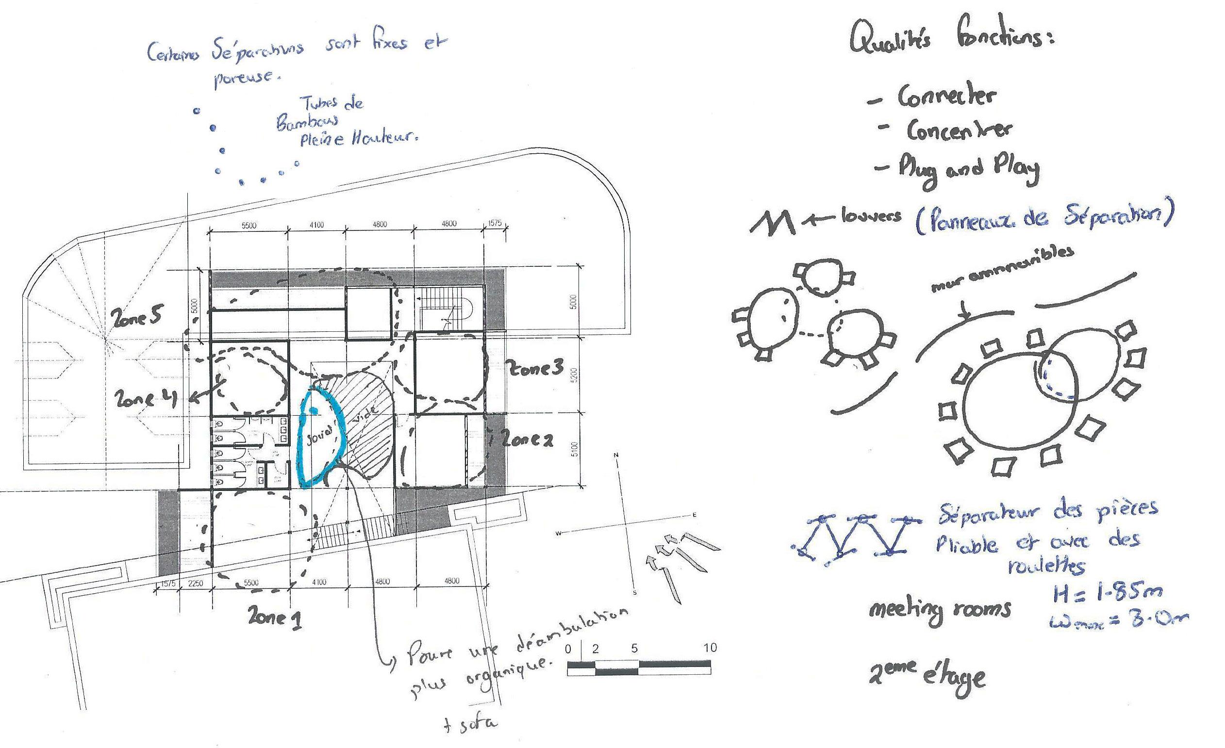 Créer un tiers lieu, pensé dans un principe relationnel aux fonctions de travail, culture et appropriation democratique pourrait subir des mutations d’usage comme par exemple devenir un fab lab ou salle d’exposition d’art dans l’avenir. Ou même avoir la capacité d’accepter ces différents usages dans des temporalités différentes