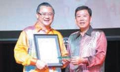 Tan Sri Teo Chiang Kok, PPKM President receiving his award for Outstanding Leadership During the Pandemic from Datuk Andrew Lim, MRA President, 2022