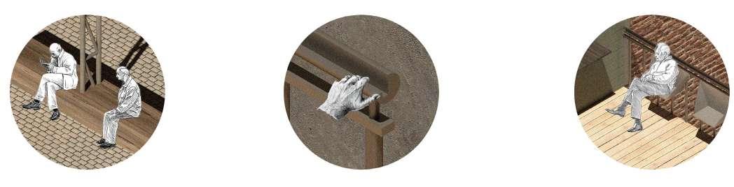 ARCHITECTURAL ELEMENTS PASSAGE OF TIME WITH PEOPLE PASSAGE OF TIME WITH MATERIALS PRODUCTION ACTIVITIES BY RETIERED MEN AND WOMEN MULTIGENERATIONAL APPROACH CATERING TO YOUNGER GENERATION ADJACENT BUILDING ADJACENT BUILDING ADJACENT BUILDING