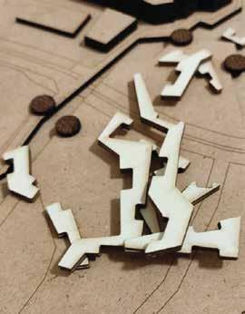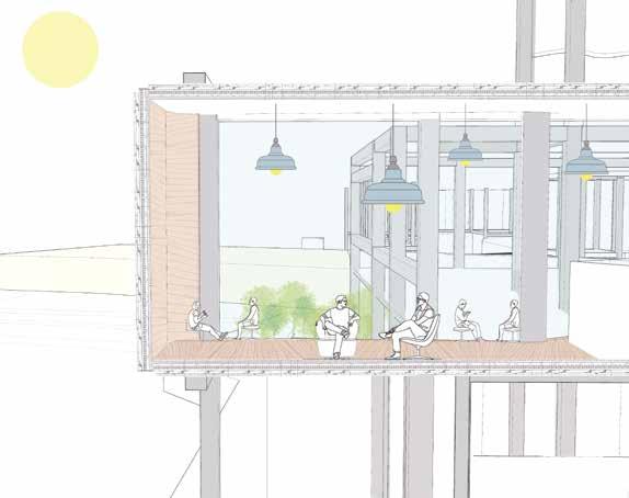 smae level o f the br dge w her e the bridg e acts as an ac ces s too to the wo rksho p space s and conn ects the forms on bo h sides of the br dg e The dor ms hous ng are for the ocussed g ro ups ( c onstruct o n wo rkers s a member s) due to the domination of these user groups o n the s te and n the ne ghbour ing s tes whe e 40% of Jaddaf is unde rgo ng co nstruct o n So n o rder to and congested acco mo da o ns ma nly, the dorms housing s prov ded to he m and s p aced o n the zo ne w hich s mos t accessed by the ocusse d groups The build n g space is the main interac-