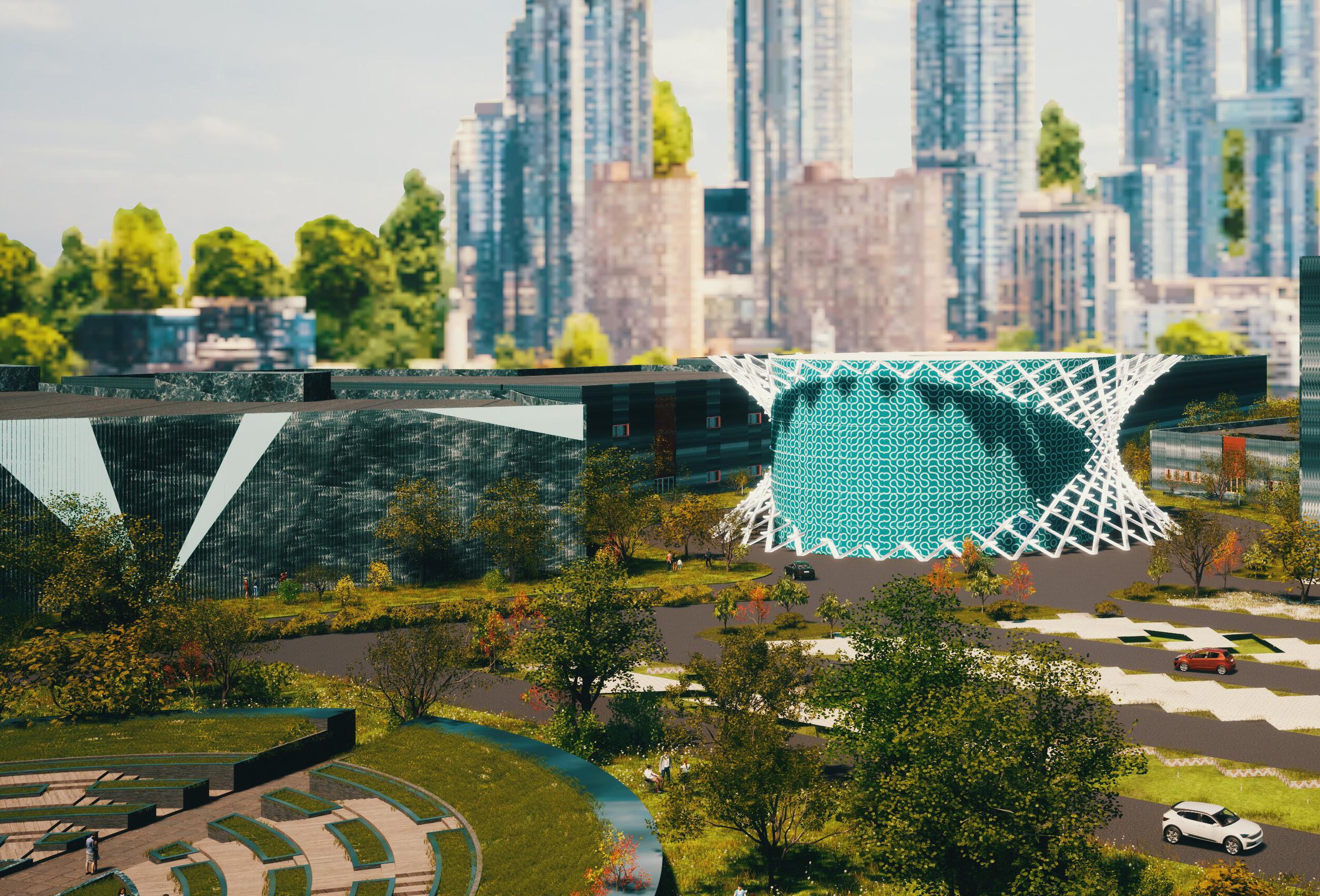 Welcome to the mesmerizing ArachnoWeave Centre, where the artistry of spiderwebs takes architectural form. This innovative mall is inspired by the inherent design sense of spiders, drawing inspiration from their captivating weaving techniques. Just as spiderwebs attract prey, the mall’s design elements aim to entice visitors. The façade, crafted from perforated concrete, beautifully mimics the intricate patterns of spiderwebs, while also incorporating principles that resonate with insects’ visual perception in UV light. The overall effect creates an immersive environment where visitors are lured by the interplay of design elements and spatial construction, reminiscent of nature’s delicate and captivating creations. ence, leaving a lasting impression