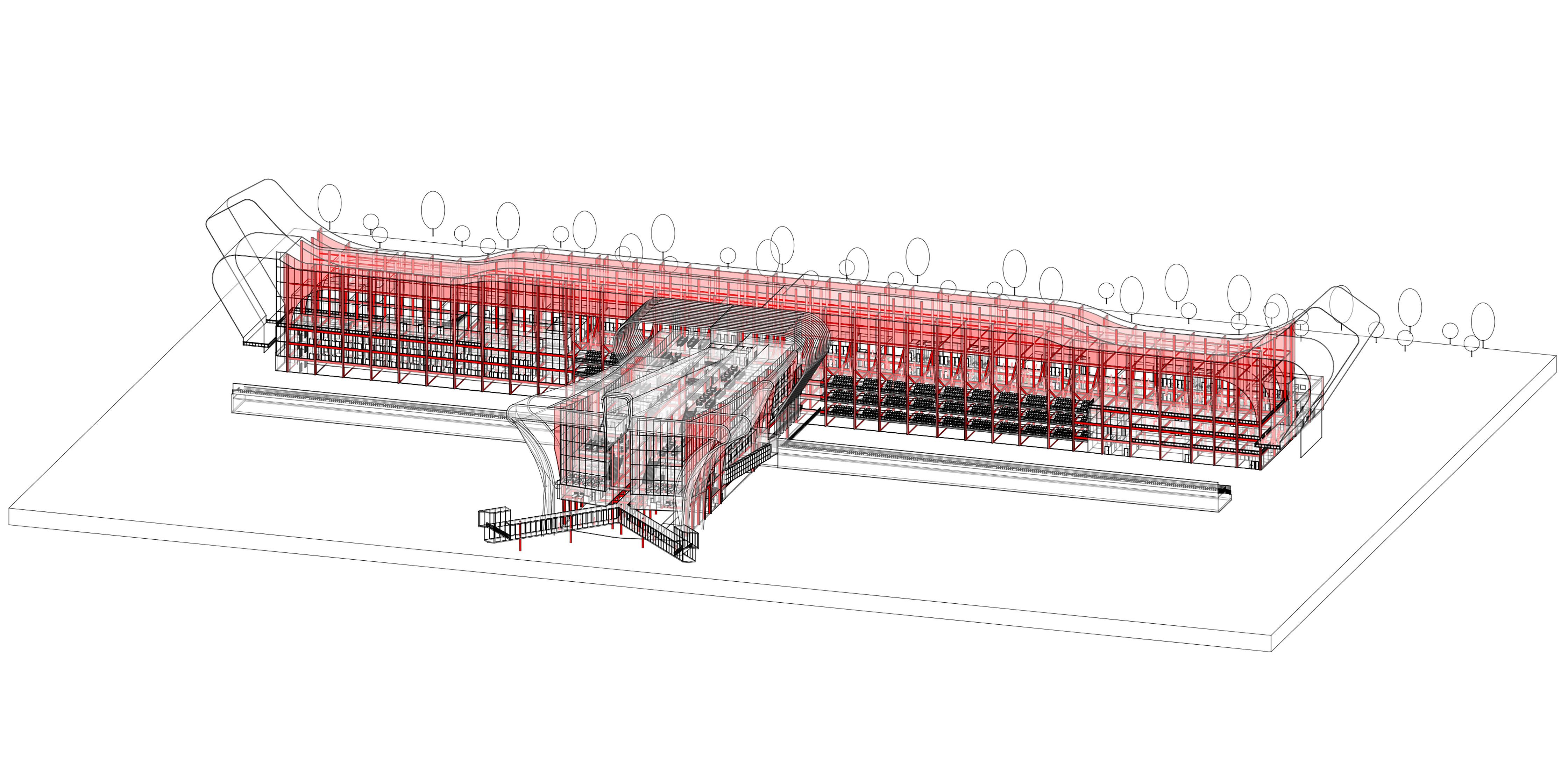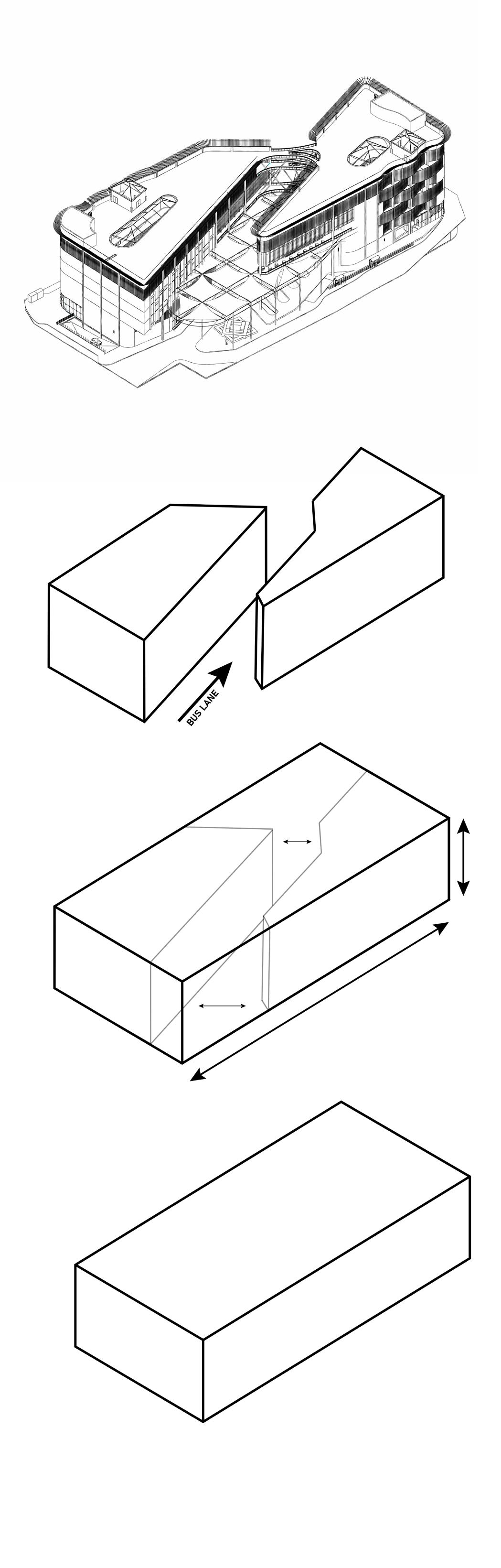 The initial design for the transit hub began with a cuboid block.