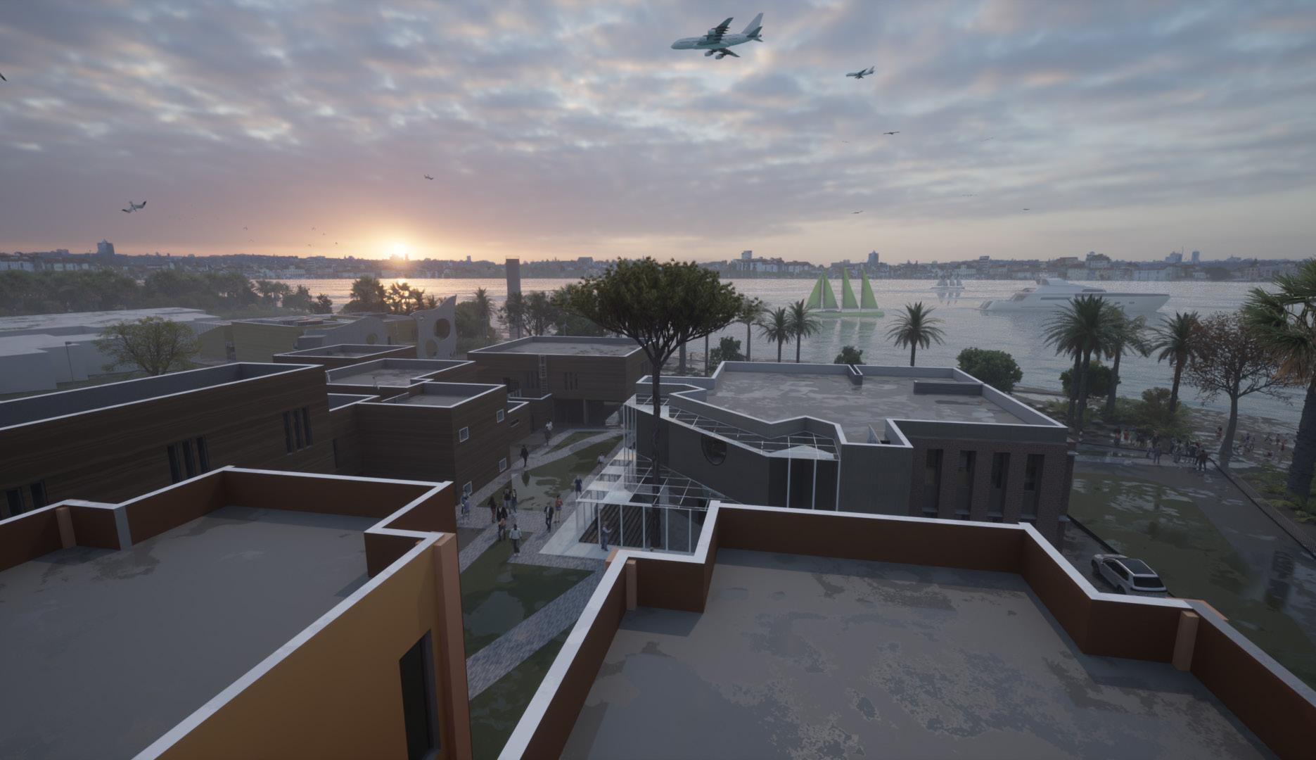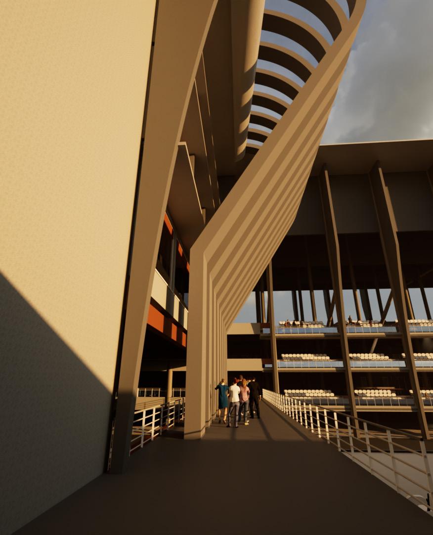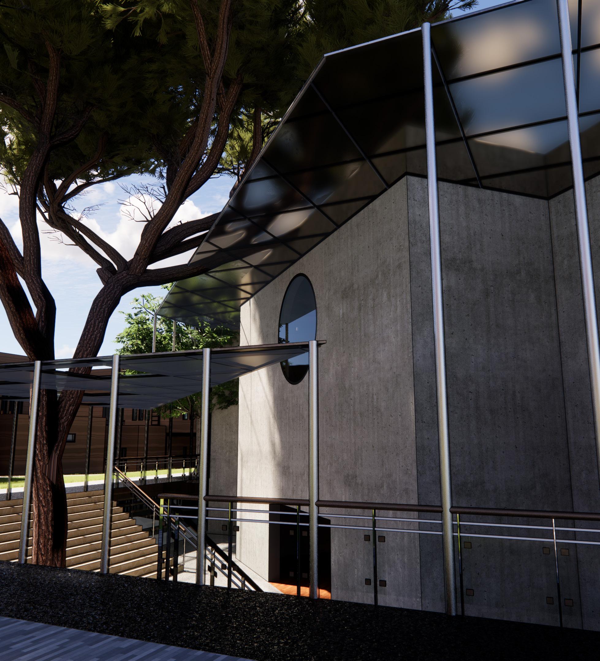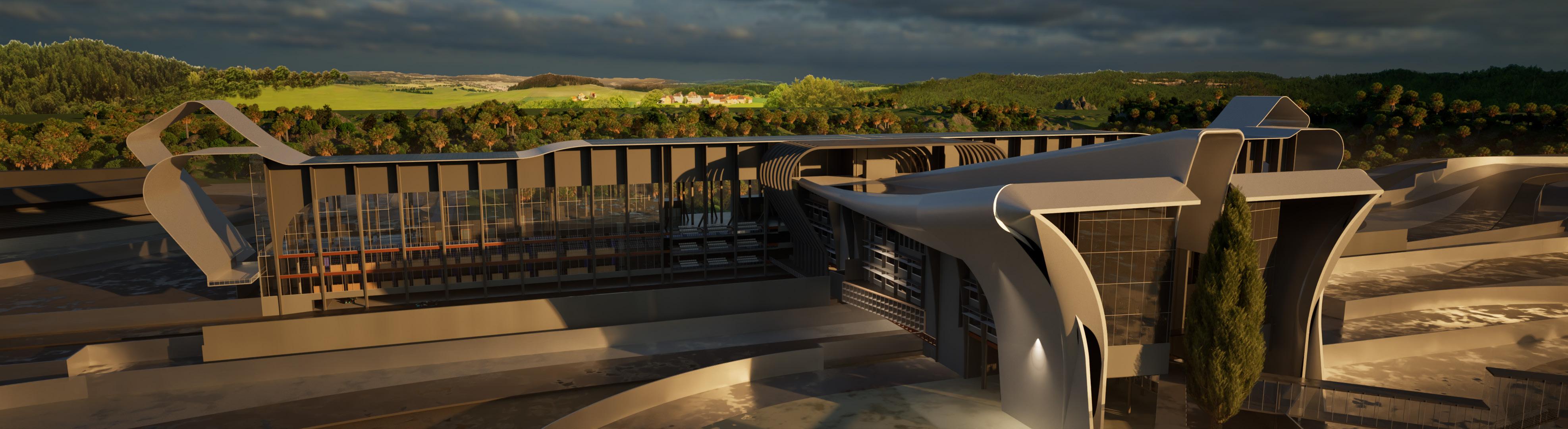 I ensured that the visual elements of the design and materials did not deviate from the concept, designing the entire complex to resemble a formula 1 vehicle.