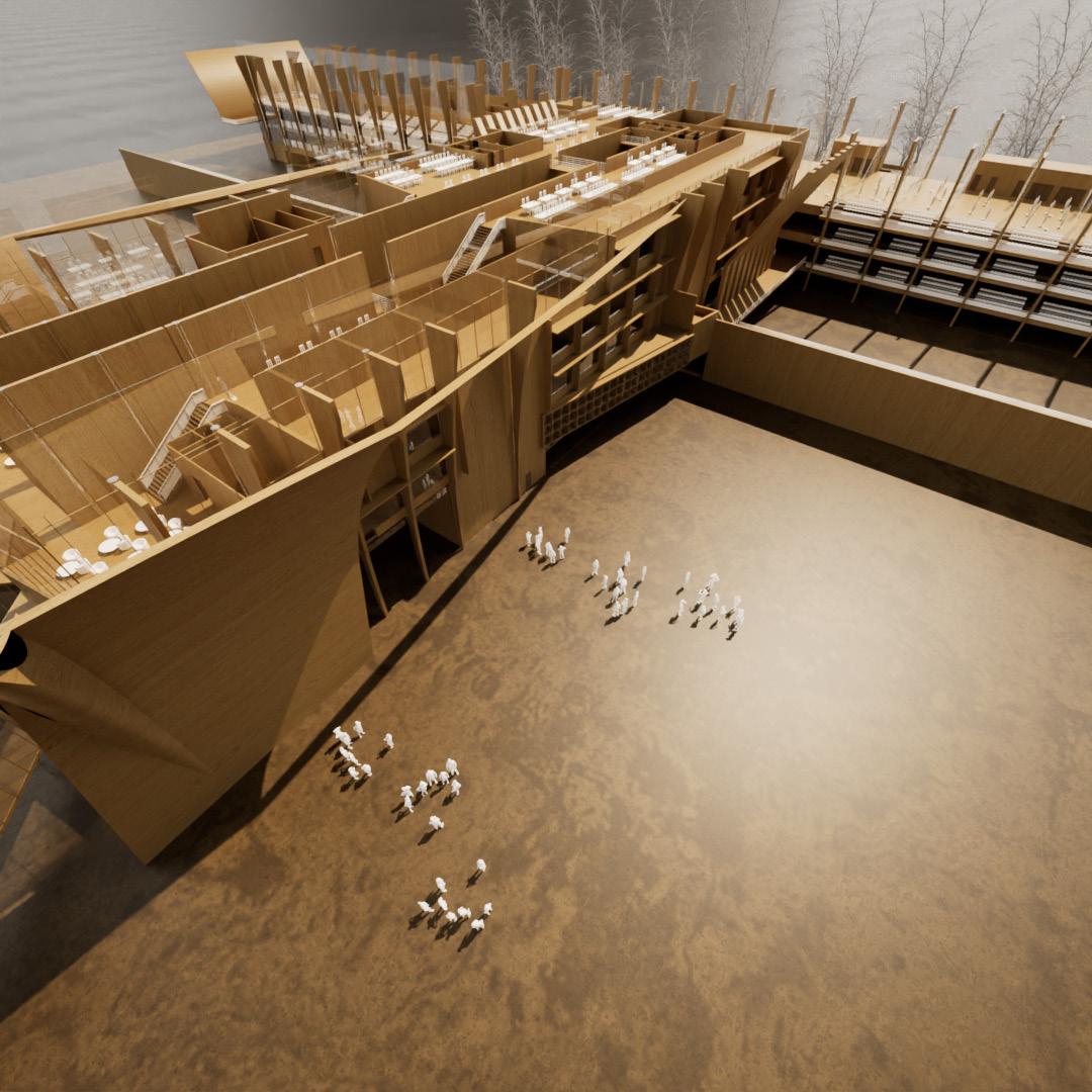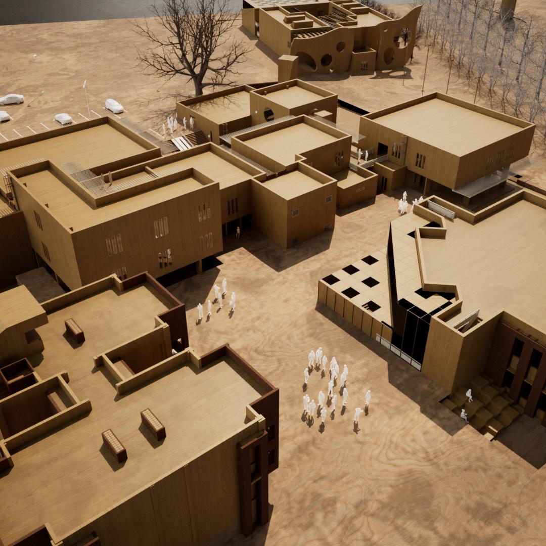 Solid-void architecture serves as the foundation for the entire institution’s design. I arrived at this design by putting the blocks in such a way that every room on the property has access to natural light, ventilation, and create a calm and serene environment for the occupants.