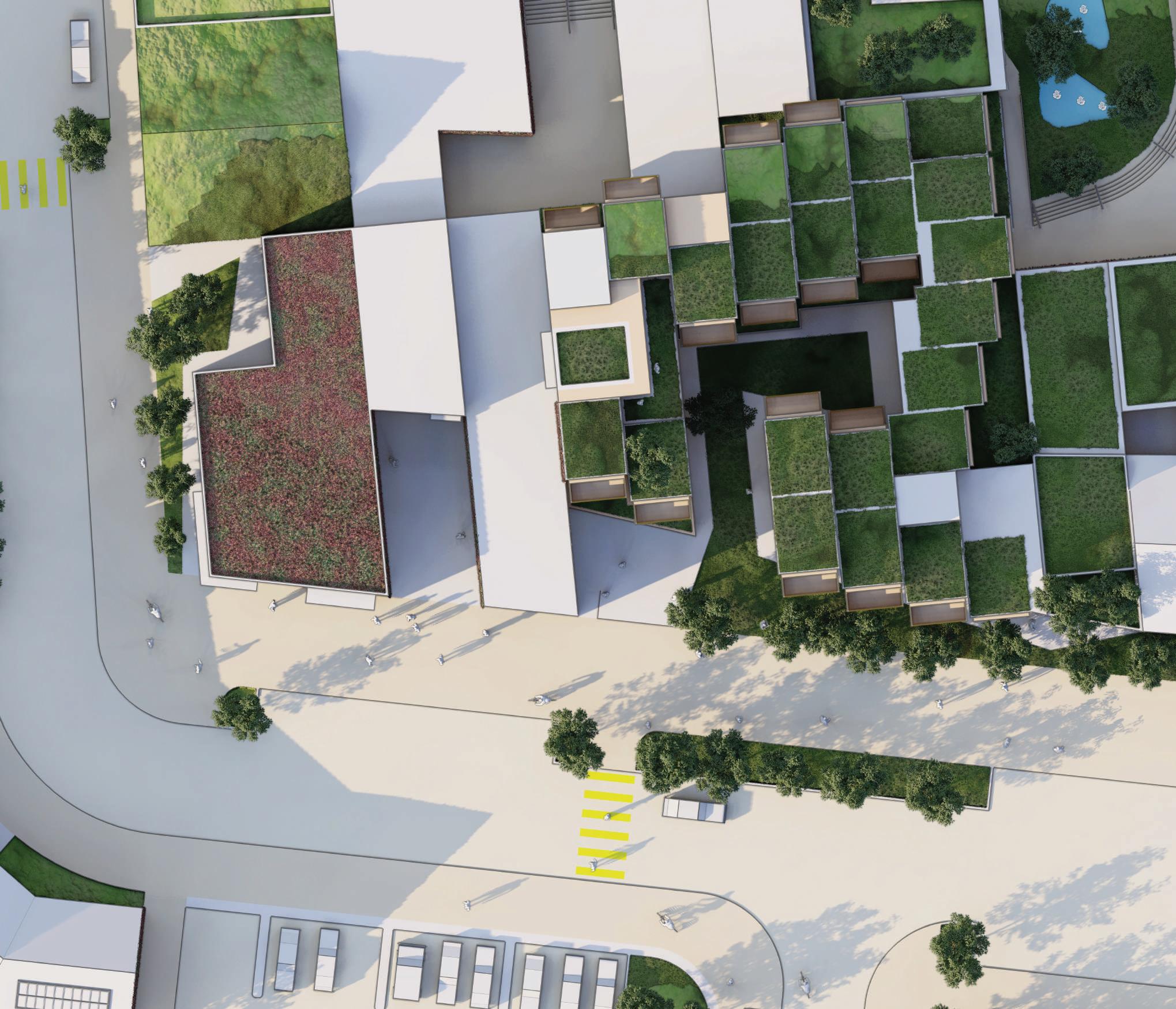 Outside the masterplan design, the primary route linking the main road prioritises pedestrian and bike safety.