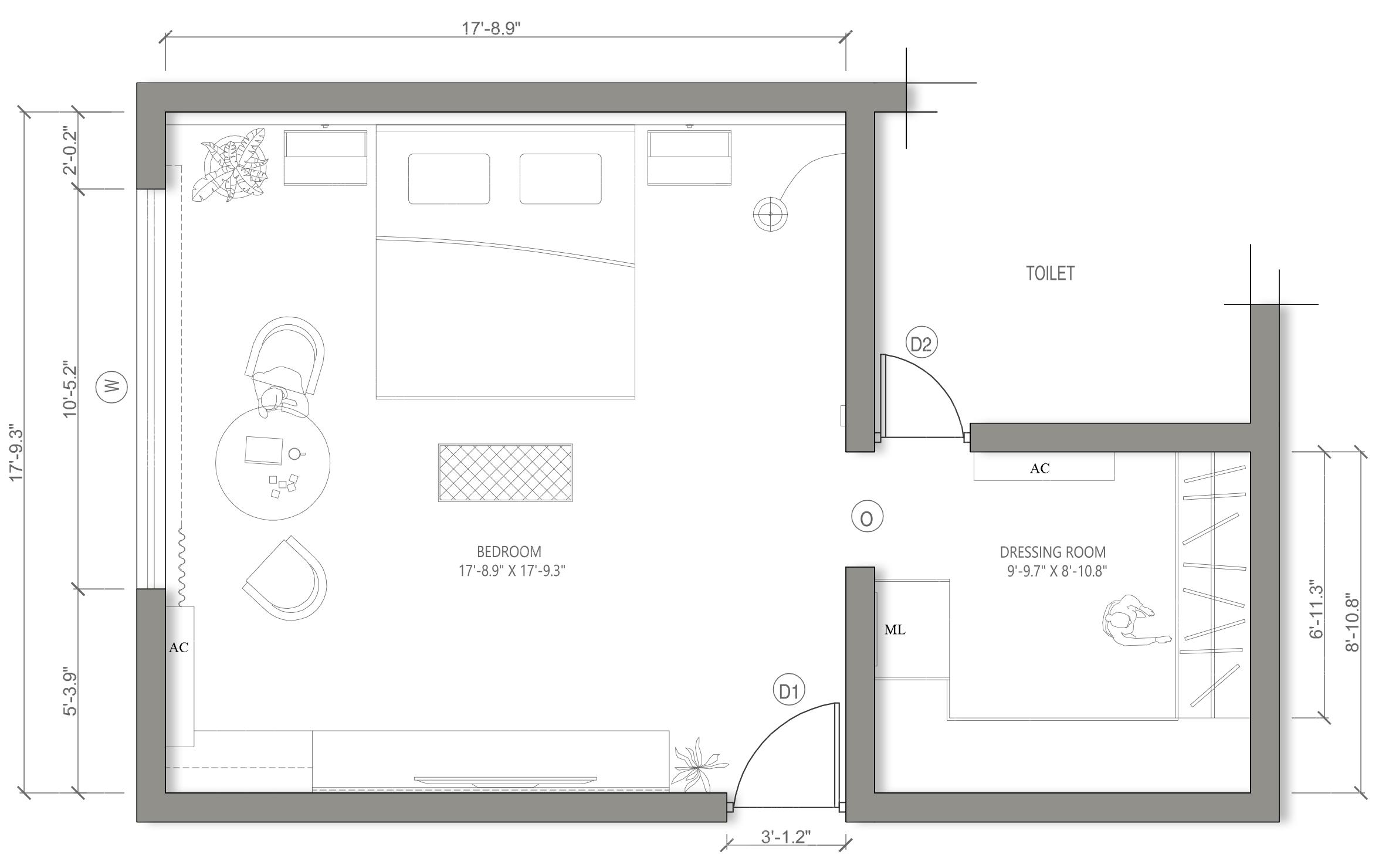 Some of the requirements were to stop overlighting from the big windows and give an cozy look to the space.And add bar with an seating,wardrobe for dressing room
