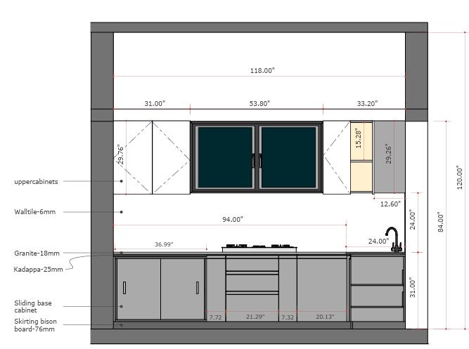 The civil work is added by rising the level with bricks and screed and adding Kadappa stone for seating on it.It includes aluminium frame sliding storage beneath seater.The doors are of birch ply 3/4”