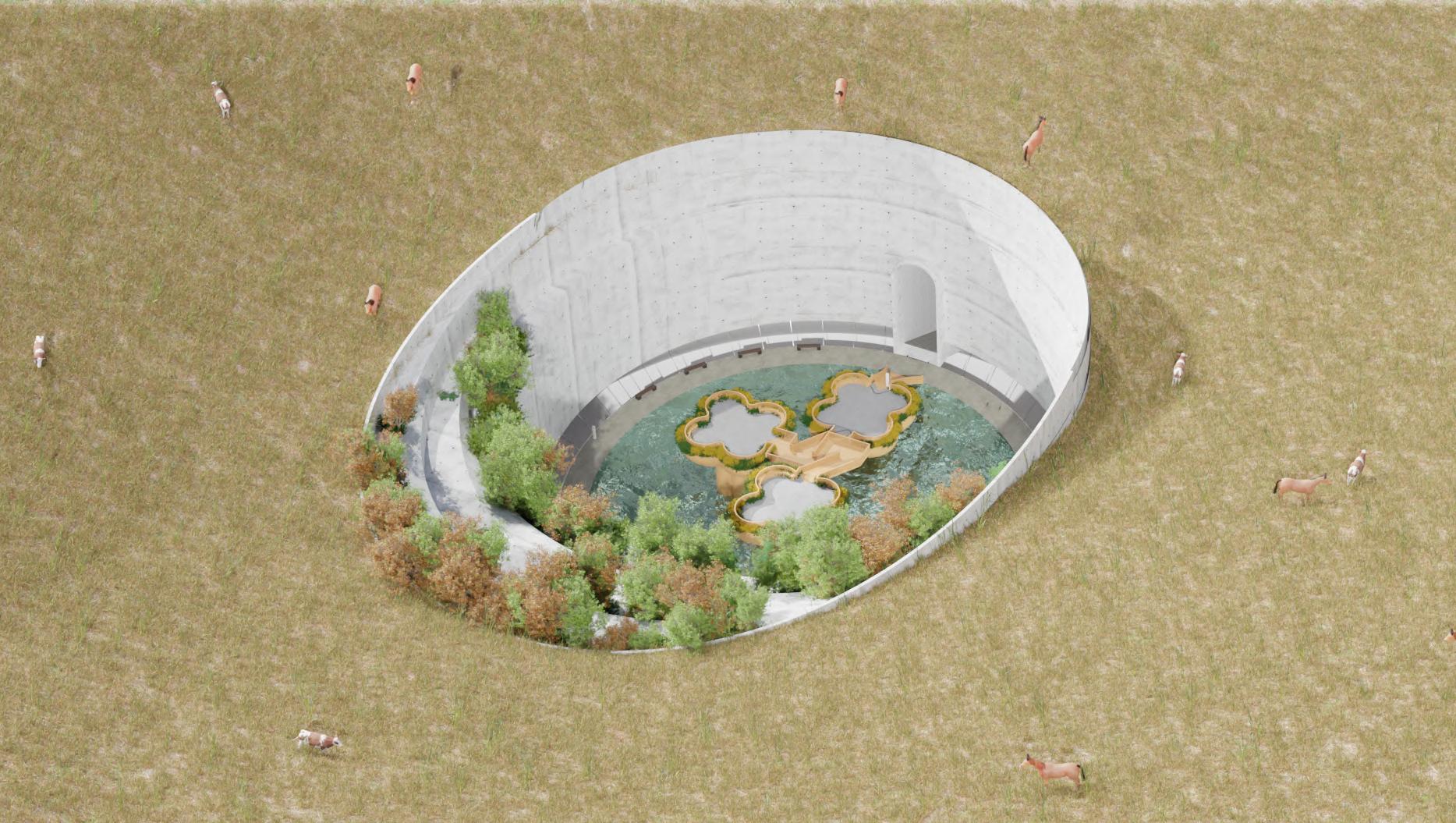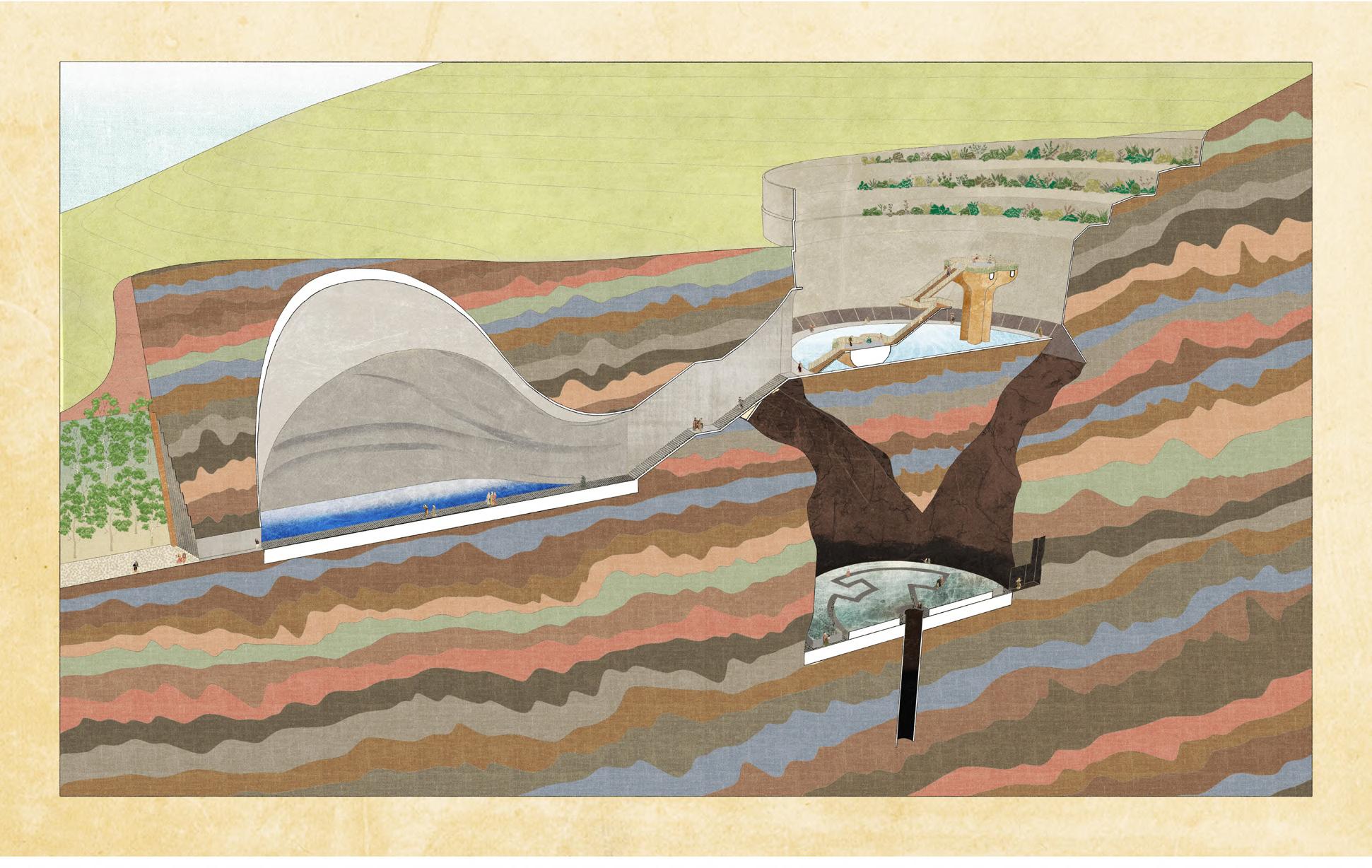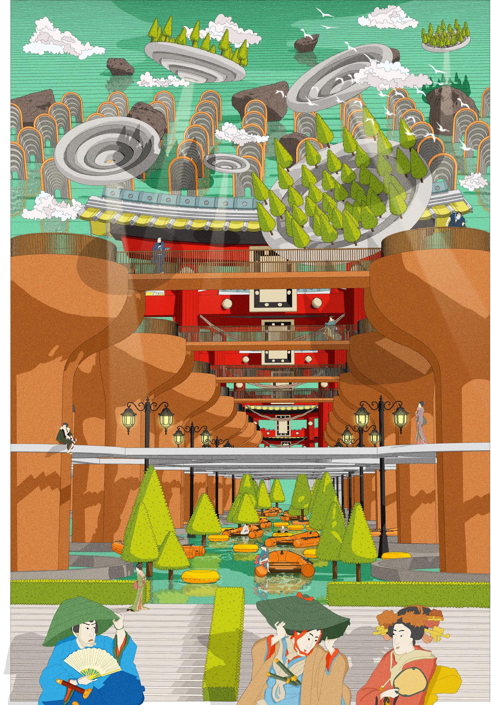 furthered my research with this competition to truly evaluate the potential of the design. allowed for the design to not only be used for the present but anticipate the future as well as draw sustainable factors to enhance the designs capabilities such as geothermal energy. Japan being known for their onsens and its healing qualities posed a great opportunity for progressing with contrasting emotional states. Given there being three spaces with water as an element throughout, users experiences of onsens will enhance or disrupt what is originally thought of with a natural bath house.