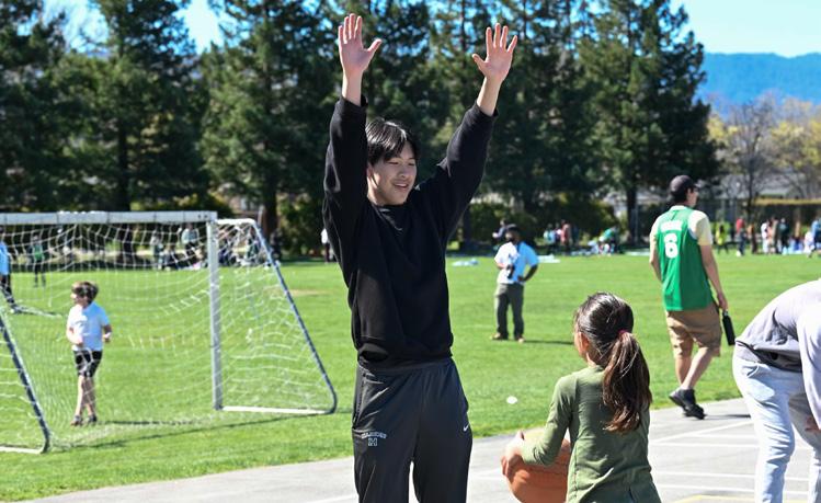 The sophomores met their Eagle Buddies in the Zhang Athletic Center and then headed in groups to Davis Field, where they started the session by eating lunch on the field with them. Afterwards, staff hosted outdoor activities on the field, including sports, parachute games, large connect four and games such as bean bag tossing.