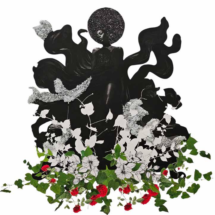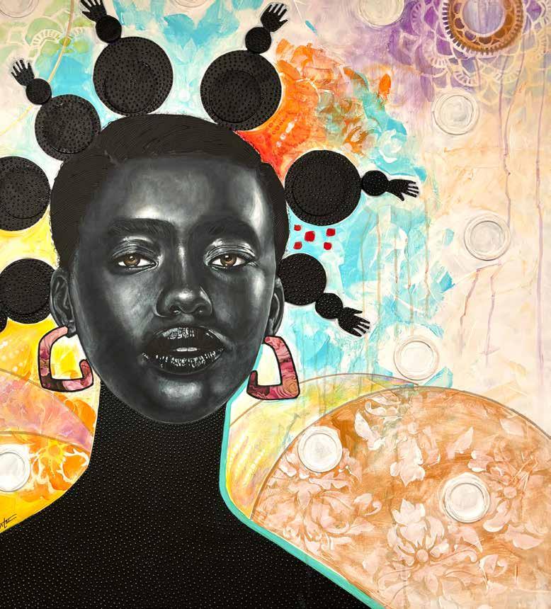 Tanzanian-Nigerian artist Marryam Moma , based in Atlanta, creates intricate collages from repurposed materials, exploring themes of identity, empowerment, and self-love. Inspired by her multicultural heritage, her vibrant works celebrate transformation. Collected by brands and private collectors alike, Marryam’s collages invite reflection on belonging and individuality through bold, layered storytelling.