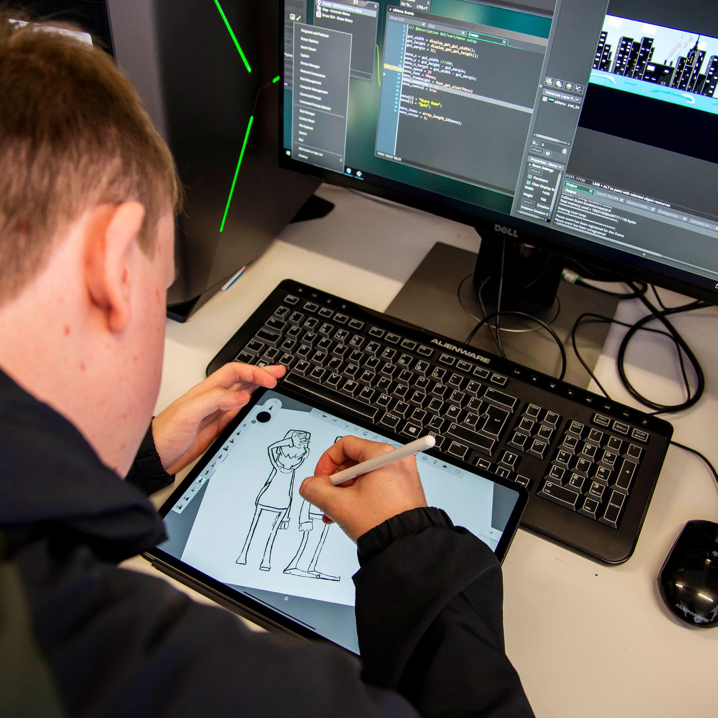 Our creative courses in Games and App Design, as well as creative technologies, will provide you with the skills and understanding for a career in the industry through our different pathways. Games Design involves creating the stories, coding, visuals and the overall experience of a video game. App design, on the other hand, focuses on creating user-friendly interfaces for mobile applications.