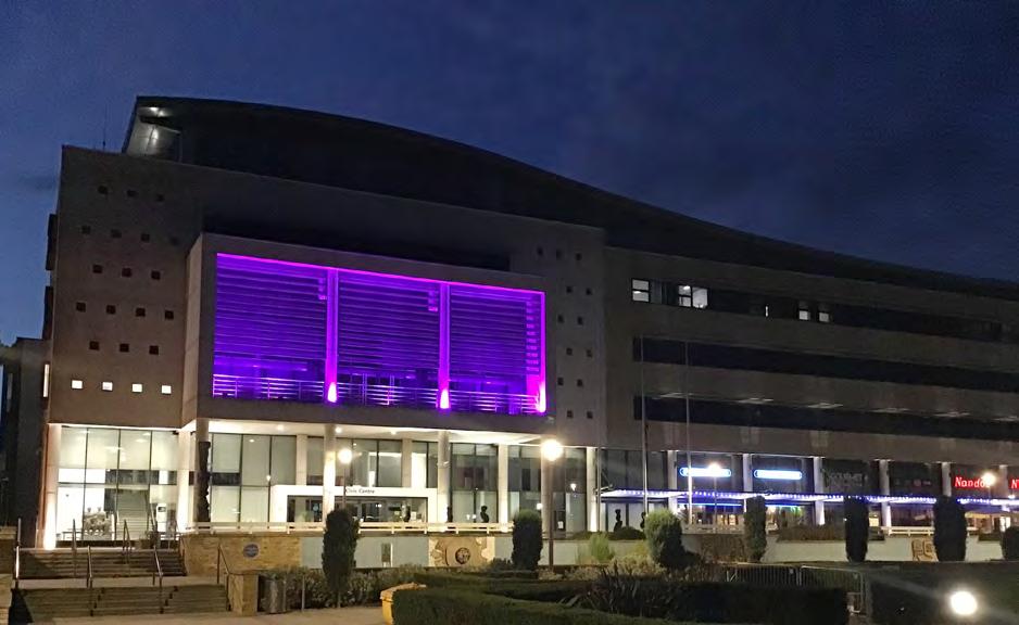Floral tributes were laid at The Obelisk in Harlow town centre and the balcony of the Civic Centre was lit up purple at night throughout the period of mourning.