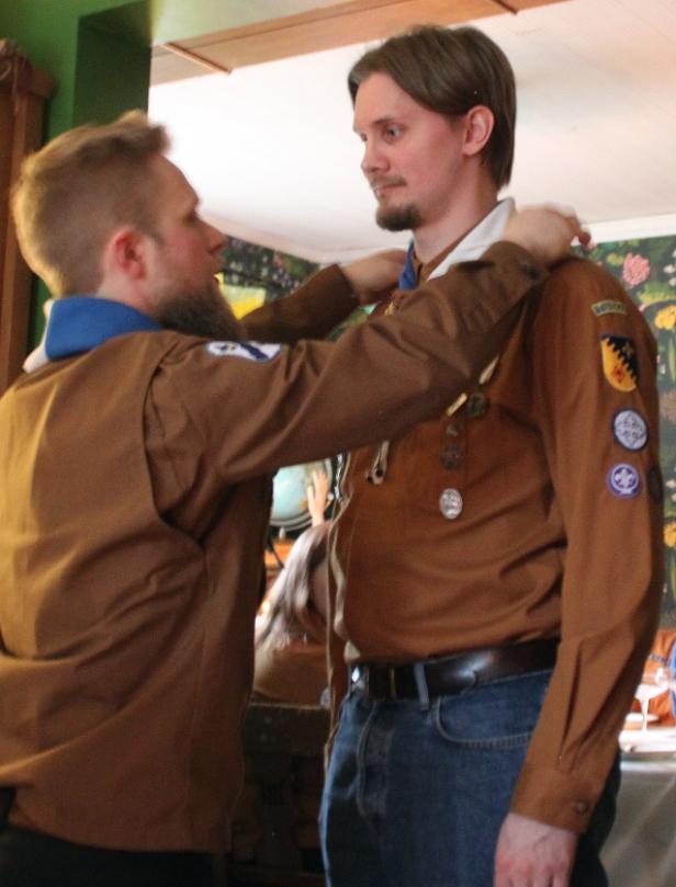 hyvästä ja aatteellisesta asenteesta Viialan Metsänkävijöiden lippukunnanjohtajalle hopeiset Mänkijämerkkikorvakorut, luovutettiin muutama ansiomerkki sekä lahjoitettiin Suomen Metsänkävijöille puheenjohtajan käädyt. Upean päivän päätti sauna, jossa keskustelu päivän teemoista jatkui innokkaana.