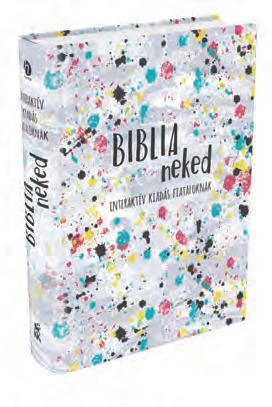 Biblia neked – Interaktív kiadás fiataloknak 1584 oldal, 160 × 218 mm, 24 000 Ft – A Biblia neked című kiadvány fiatalok közreműködésével jött létre, és rengeteg izgalmas dolgot tartalmaz: • 30 bibliai témát feldolgozó videó l ink • Több száz interaktív, az elmélyülést segítő feladat a szövegrészek mellett • Szabad felületek jegyzeteléshez vagy rajzoláshoz • Egyoldalas bevezetés minden könyv elején • 32 színes oldal kulcsfontosságú információkkal.