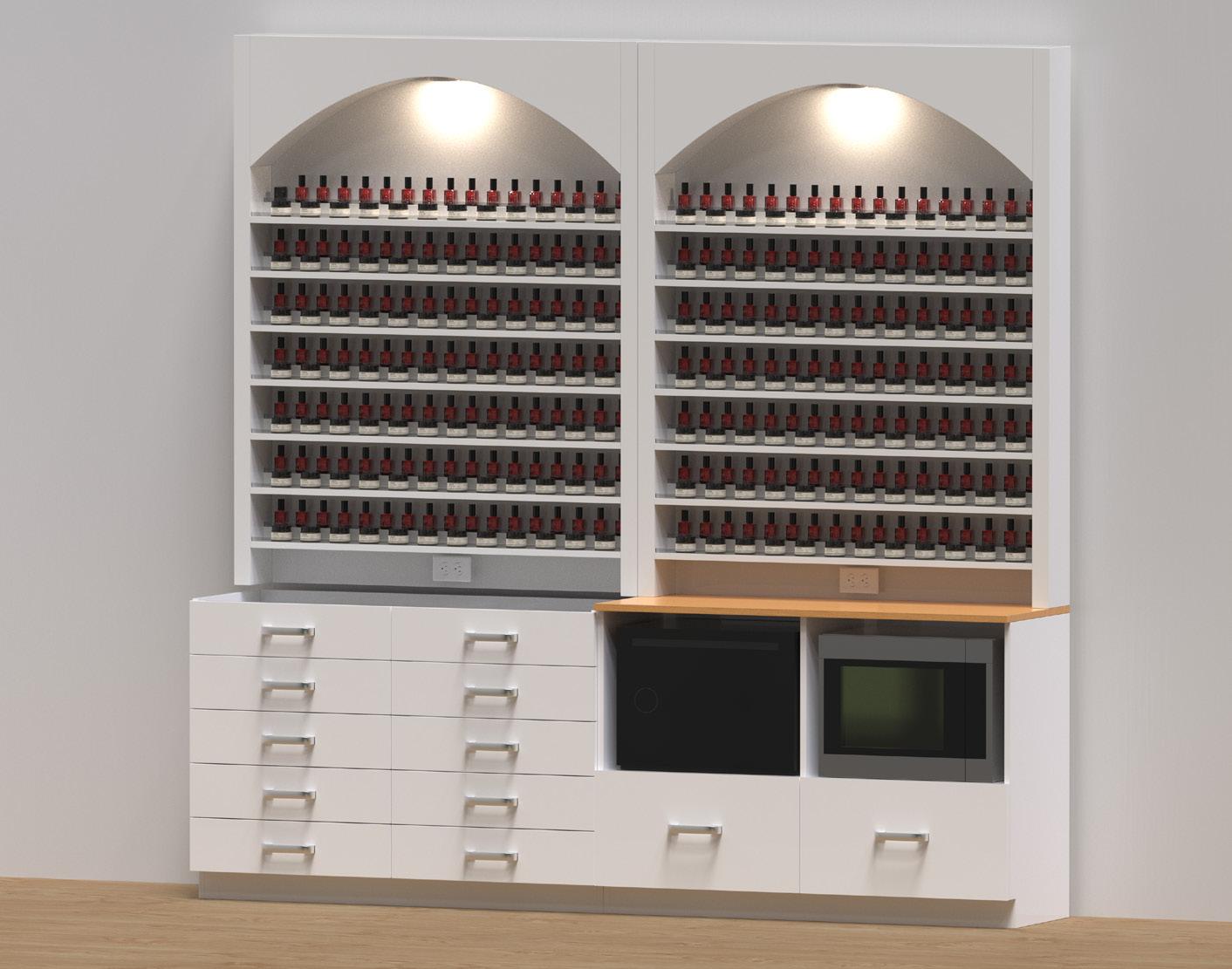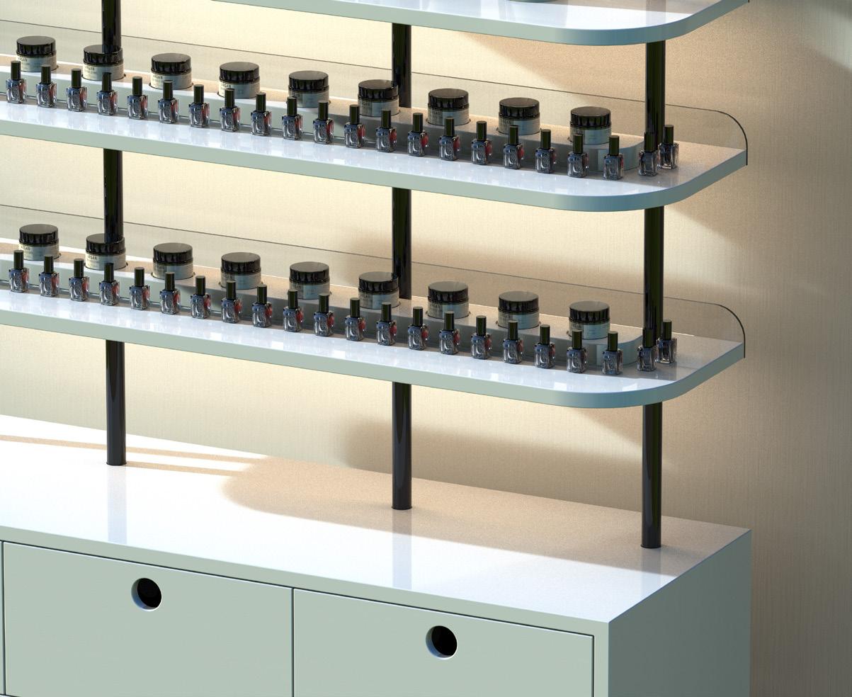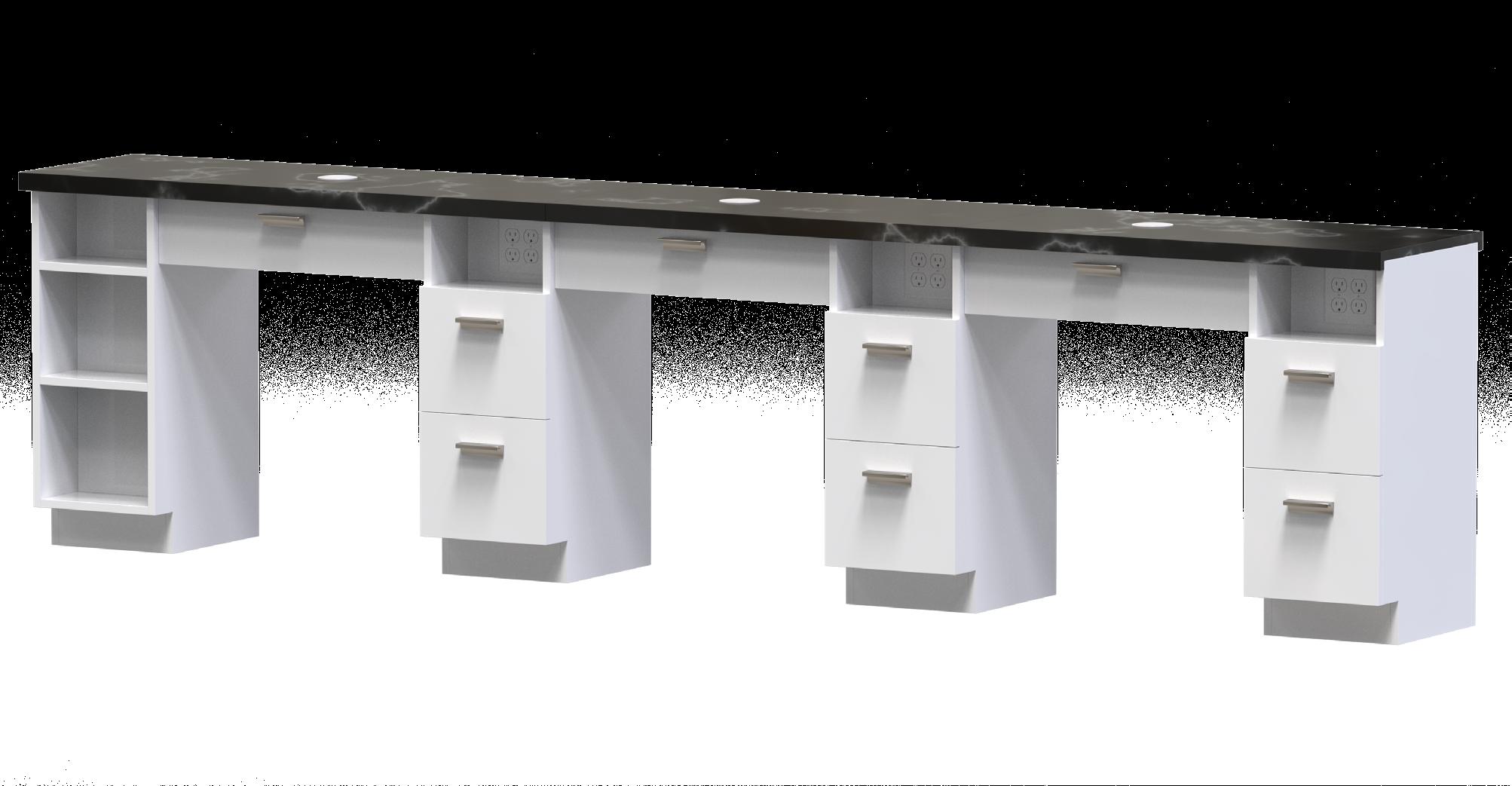 Locate tables and drill holes to install the nails dust collector. Install the nails dust collectors. Place quartz tops on the bases.