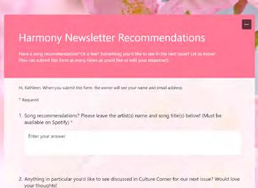 excitedly emailed Kathleen Oku and Vi Bui about an idea: “We Harmonies would take pictures together and send with names connect and portray Harmony members IRL (“in real life”) members only via Teams profile pics.