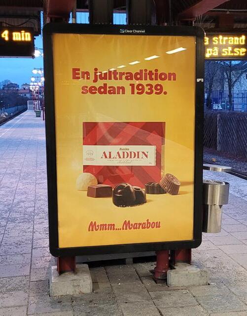 Aladdin är ett givet inslag i vårt julfirande och en storsäljare för chokladfabriken Marabou. Vi köper årligen 2 500 000 askar (!), varav drygt två miljoner till jul. Marabou vill att vi ska fortsätta att unna oss pralinasken till jul, precis som vi hittills gjort i generationer.