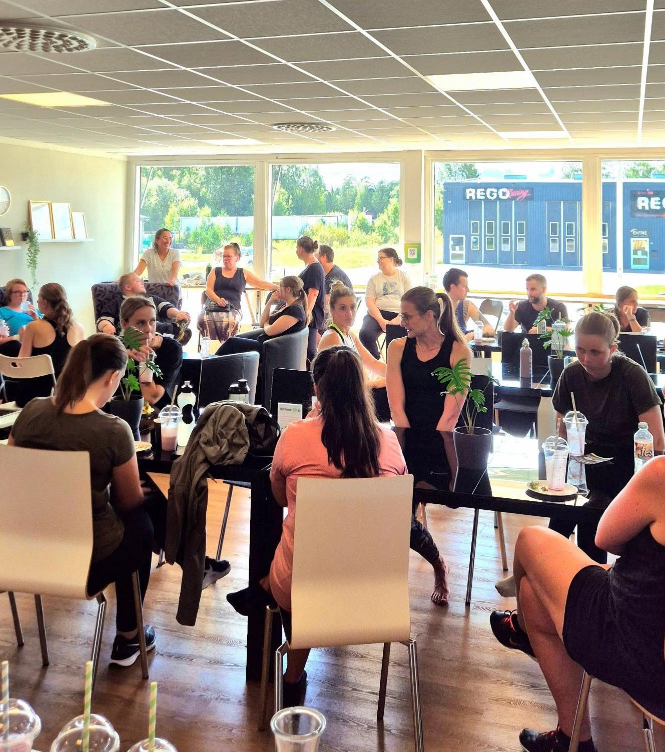 – Vi ville ta med oss känslan utifrån in och det tycker jag vi har lyckats med, säger Peter. Under de här åren skapade vi ett team omkring oss med andra ledare som brinner för välmående och som har samma syn på hälsa och träningsglädje som vi. Personer som vill vara med och hjälpa andra att må bra och få dem att tycka att det är kul att ta hand om sig. Jag själv känner mig hemma i huset, här finns en lagkänsla som kan liknas vid den som fanns när jag spelade ishockey. Att se hur glada alla är. Att alla hälsar