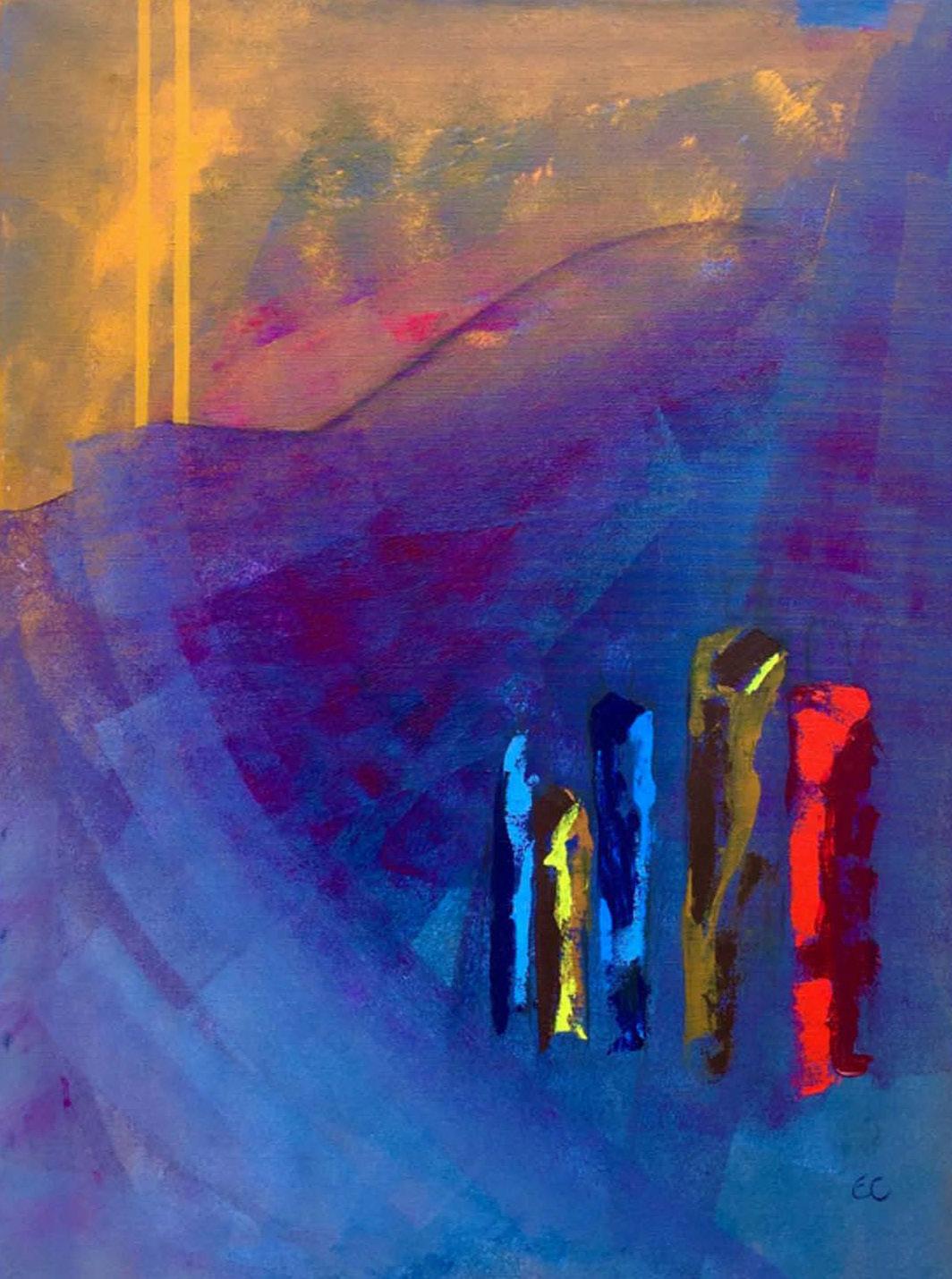 Min teknik är akryl och pastell på duk och jag använder med förkärlek starka färger.