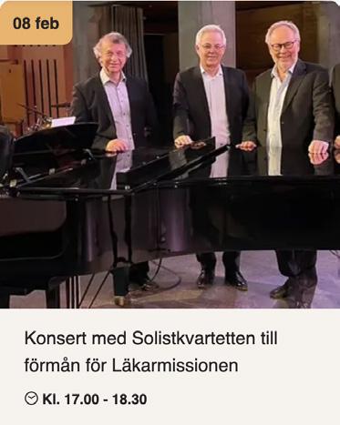 Musik. The Music of Hans Zimmer and Others. Eskilstuna Teater kl 20 - 22.30. Musik. Från dina händer till där det händer – konsert med Kolbäcks Musikkår till förmån för ACT. S:t Lars kyrka, Hallstahammar kl 17–18.