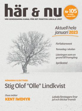 Du som vill läsa Här & Nu på nätet kan även nästa år göra det på issuu.com/haronu. Genom att jag upphör med utdelning i brevlådorna behöver du hämta den tryckta tidningen på något av de ca 40 ställen runt om i kommunen där jag redan idag lägger ut den. Den finns också läsa på mer än 40 ställen. Hos frisörer, på restauranger och vårdcentralen.