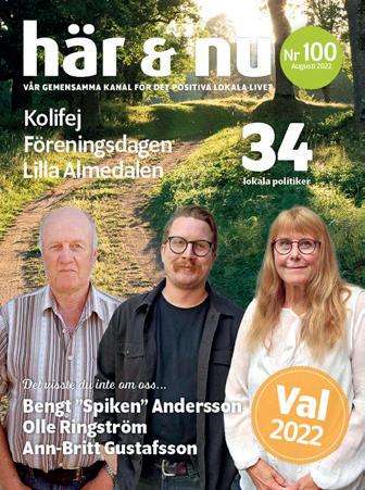 KALENDER November Med reservation för ändringar och felskrivningar. 5–6 november 19 november 3–4 december Nr Månad Utgivningsdatum 104 December 26–27 november 105 Jul, nyår & Januari 17–18 december 106 Februari 28–29 januari 107 Mars 25–26 februari 108 April/maj 25–26 mars 109 Maj/juni 6–7 maj 110 Sommar 17–18 juni För hjälp med bokning, tankar, idéer och upplägg, kontakta Mikael Metzmaa mikael@haronu.se, 0706-717 038 haronu.se BOKA DIN MEDVERKAN REDAN NU! KOMMANDE UTGIVNINGARVarje månad flyttar det in ca 100 personer till kommunen. Här kan du berätta för dem vad ditt företag gör. 47HÄR & NU #103 2022