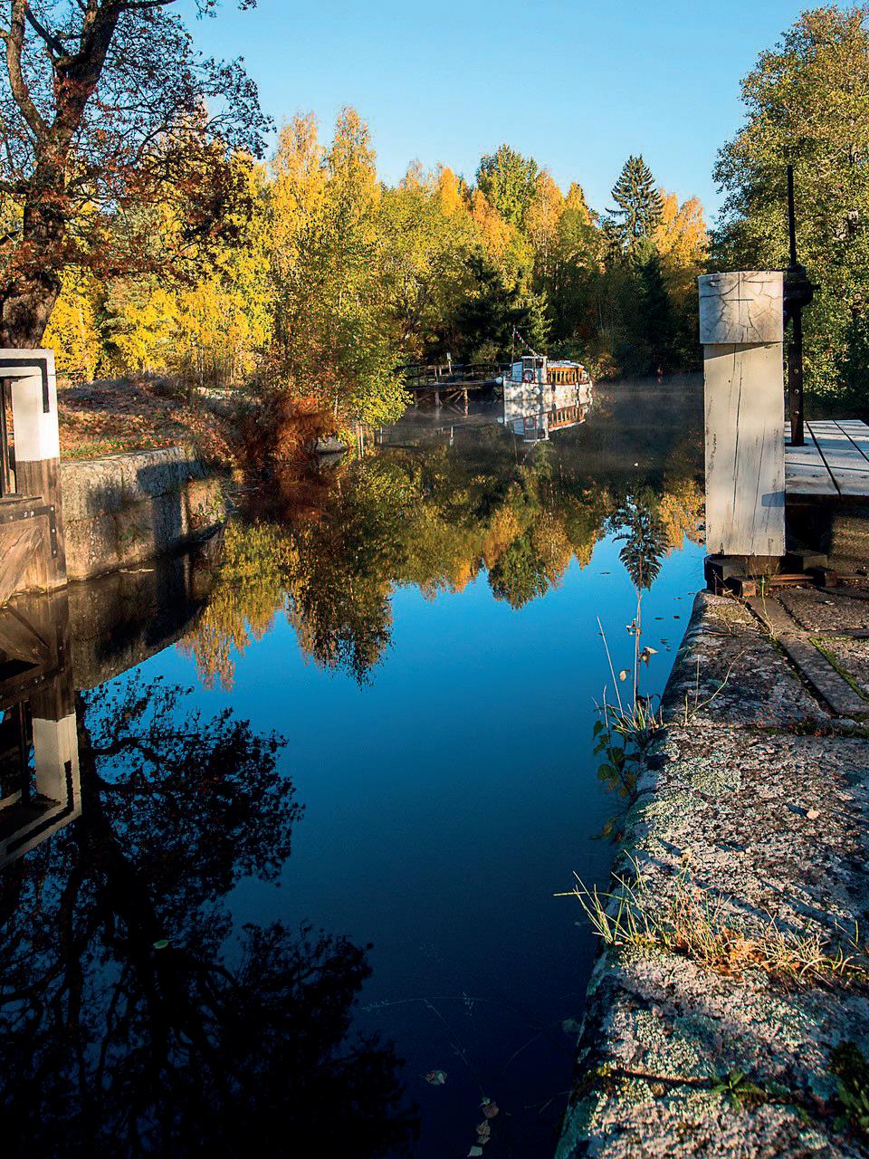 En alldeles underbar oktobermorgon åkte jag till Trångforsområdet för en motiv promenad. Strömsholms kanal har här sin norra start mot söder, förbi Kolbäcksåns alla forsar och dess höjdskillnader, i Hallstahammar. Vid bryggan strax ovanför kanalens norra stämport ligger ”turbåten” Oden. Sommaren 2022 var det premiär för Oden att göra båtresor med passagerare på kanalen.