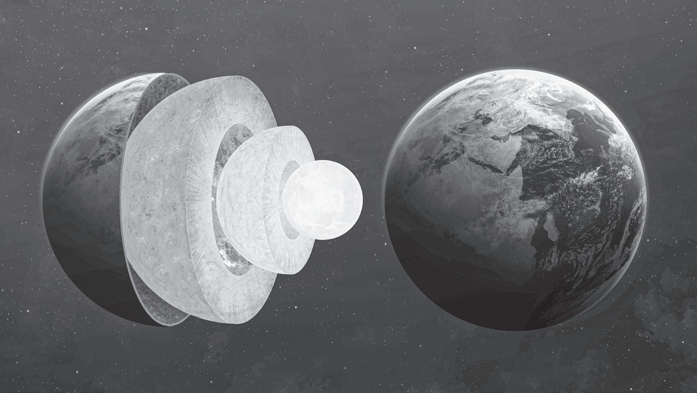 Toen onze planeet zich 4,6 miljard jaar geleden vormde, daalden alle zwaardere elementen naar de kern van de bol en stegen alle lichtere elementen naar de korst. Als je onze planeet, hypothetisch gezien, zou doorsnijden, dan zou je die in verschillende lagen kunnen onderverdelen.