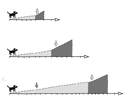 ‘De curve afvlakken’ (‘de sterfelijkheidscurve afvlakken’) is een ma nier om te kijken naar langere levensduur. Het houdt in dat je sterfte risico (kans op overlijden) laag blijft naarmate je ouder wordt. In plaats van steeds brozer te worden, blijf je in goede gezondheid tot kort voor je overlijden. ‘Blij gezond, blij gezond, blij gezond en dood’, zo leven (en sterven) we het liefst. Dat staat in sterk contrast met wat men ons heeft laten geloven (de neerwaartse stippellijn): als je de middelbare leeftijd hebt bereikt, en zeker na je pensioen, heb je een baaierd aan symptomen die je mobiliteit en/of hersenfunctie beïnvloeden. We krijgen steeds meer medicijnen voorgeschreven om onze slijtende lichamen overeind te hou den. We krijgen kanker of alzheimer, een hartaanval, een beroerte, er valt een orgaan uit, we teren nog verder weg en dan gaan we dood. Jasses. Volgens de wetenschap hebben we zelf stevig de hand in welke van deze twee scenario’s het wordt, afhankelijk van welke levensstijl we kiezen. Maar hoe zit het met onze honden? Zij kunnen niet voor zichzelf kiezen, want dat doen wij voor ze. En er bestaat momenteel geen blauwdruk om een een lang, weldadig leven te creëren voor je hond, daarom zijn wij zo enthousiast over ons werk.