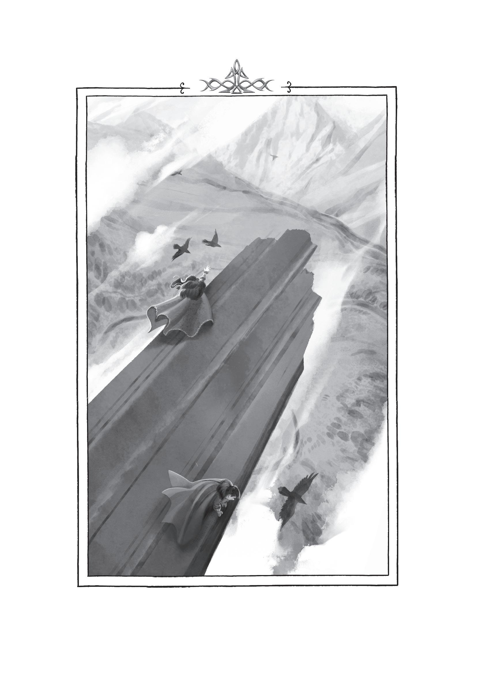 Met een zucht kwamen haar drie vrienden achter haar aan, en terwijl ze de klifwand beklommen, drukten ze zich er dicht tegenaan. De bergstam zag het nut niet in van veiligheidstouwen langs de trap en de angst voor een val knaagde constant aan hen, ze werden er allemaal behoorlijk nerveus van.
