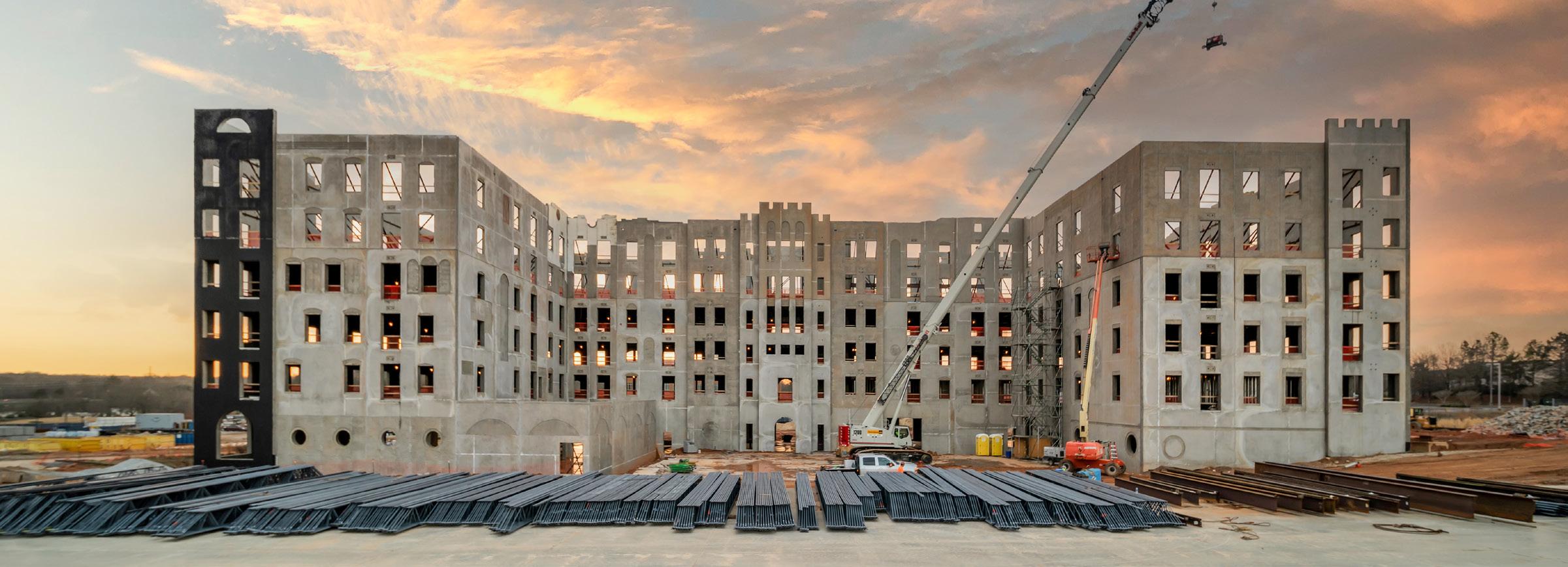 Bridgeway Station is a unique mixed use town center in Mauldin, SC. We have completed a three-story tilt-up office that is already fully occupied, a six-story, tilt-up, 163 unit apartment building, another smaller, four-story, 27 unit masonry apartment building, a historic train station, two multi story restaurant buildings, and retail building with rooftop pool. All of these buildings will have historic Italian accents to create the Italian village feel the developer desires. It is truly a one of a kind project with more to come.
