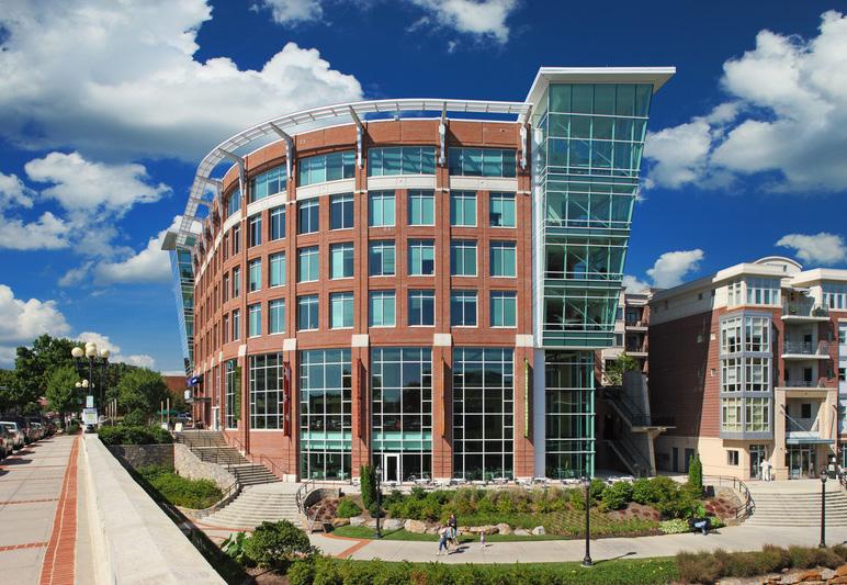 Harper was selected to serve as the CM At-Risk for the construction of the new 117,000 SF United Community Bank Headquarters in downtown Greenville, SC. The scenic downtown site sits on an outcropping of rock perched over beautiful Falls Park. The site provides some of the best views in Greenville but also made for a very complex project. The rock was partially excavated so the cast-inplace frame could be scribed into the ground. The building consists of three stories of parking with four stories of Class A executive office space above. The structure is cast-in-place concrete with skin consisting of curtainwall/storefront/ACM/terracotta rain screen with a TPO Roof. The roof includes a patio consisting of pavers. The office will contain a 3,500 SF retail branch, 314 workstations, two outdoor terraces, and 350 parking spaces. The building is designed according to WELL safety standards. There is also a flagship branch bank that extends from the office footprint to welcome the UCB customers. The striking façade is primarily glass curtain wall with terracotta and ACM accents. The interior space is highlighted with a grand monumental stair. There are also multiple terraces to allow the occupants to further take in the views.
