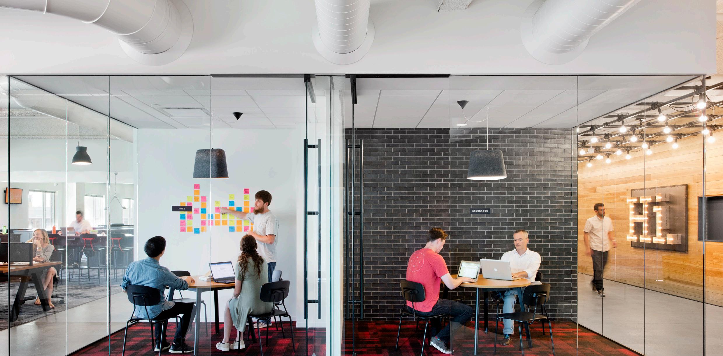 In November of 2016, EP + Co. moved their office space into a new state-of-the-art precast building. Harper served as the CM At-Risk for this upfit project and delivered multiple rounds of budgeting, material alternates, and analysis as part of preconstruction phase services. EP + Co. fills the top three floors at 100 East Court Street and is the main tenant of the building. The space was designed for office personnel interaction with an open floor design which includes innovative work environments that allow for collaborative team activity as well as secluded workspaces. The spaces include several high-end features like a rope wall, multi-tenant open stairwell, and all glass conference rooms. Offices are clustered within a centralized space, with glass walls and doors, allowing for a true team collaboration feel. Workspaces include large idea board areas as well as relaxing space on couches with large TVs to cast meetings or generate ideas. The kitchen and break room area are crisp and clean with a modern feel, enhancing a streamlined break experience. Harper provided all preconstruction budgeting services and additionally oversaw the construction phase of the project. EP + Co. Upfit was delivered on time and within budget. This Class-A office space is truly one of a kind.
