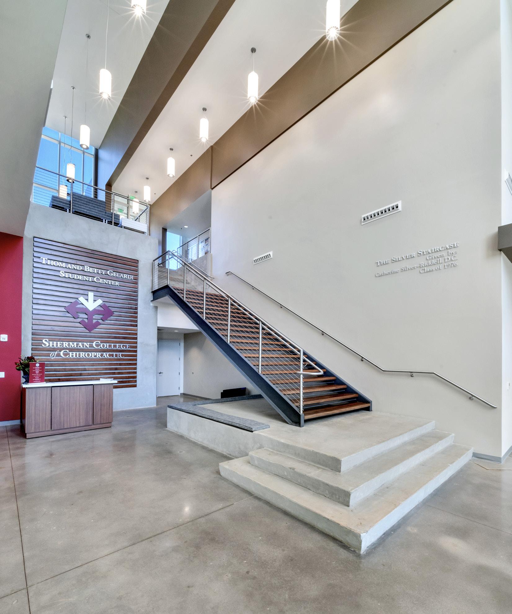 Harper was selected as the CM At-Risk for the 22,000 SF Student Center at Sherman College in Boiling Springs, SC. The center is named after Dr. Thom and Betty Gelardi and has structural steel, large 21’ concrete retaining wall, storefront, metal wall panels, brick veneer, and stucco exterior ceilings. The interior of the building has a large banquet room with exposed ceilings, polished concrete flooring, and fabric duct work. The typical use for the facility is as a library and bookstore for students and staff. The building also features a café that includes study rooms and offices.