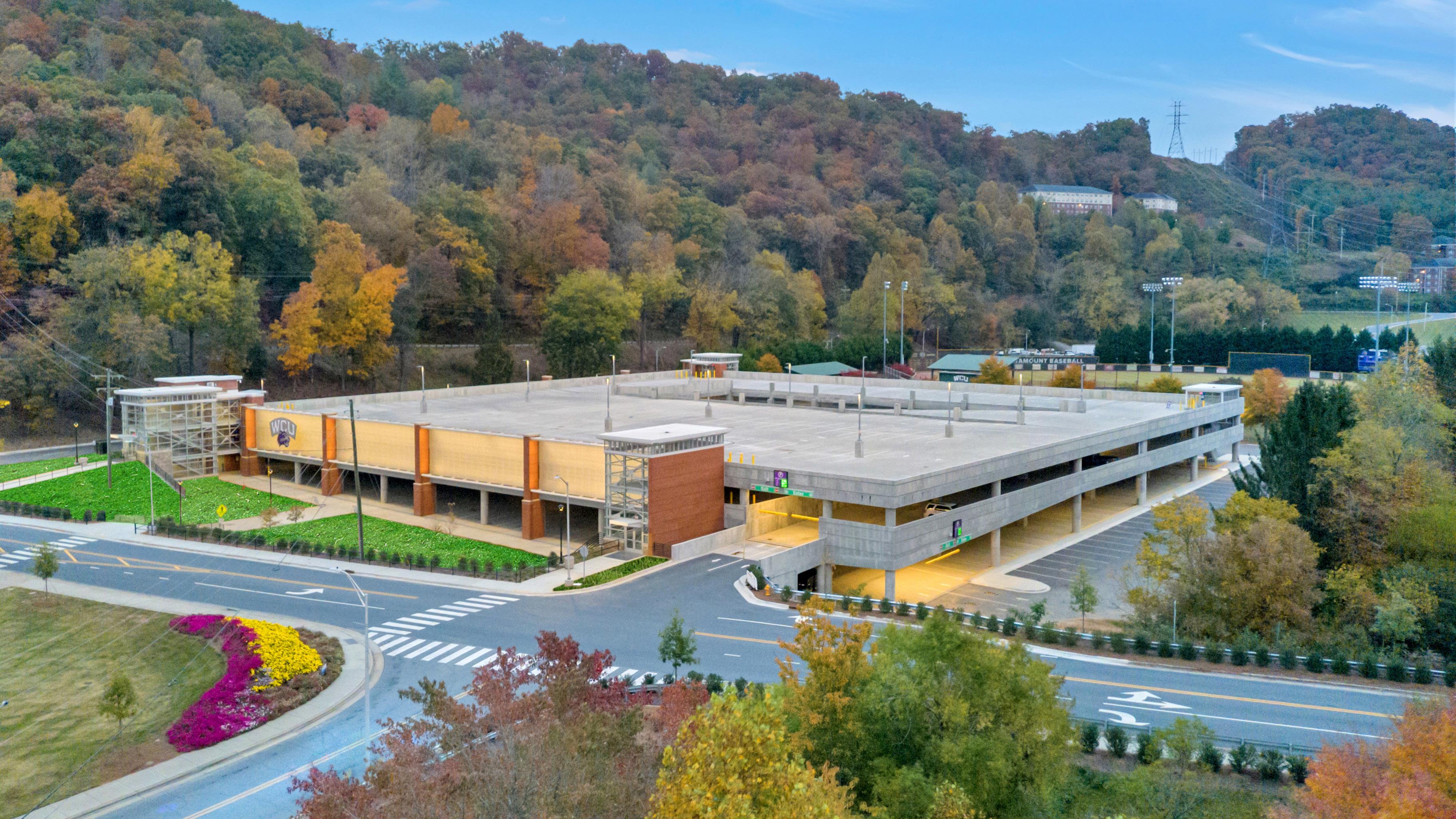 Parking Deck: The project is located on the main campus of Western Carolina University in Cullowhee, NC and consists of a new parking structure and renovated parking lot with a total capacity of approximately 1,000 spaces. The parking deck is a cast-in-place concrete three-level parking deck replacing most of an existing surface parking lot at the corner of Forest Hills Road and NC State Highway 107.