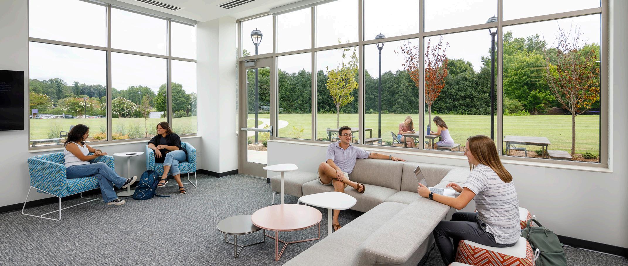 Lakeview Hall: Harper completed a 158,000 SF, 4-story residence hall on Furman University’s campus. The new hall is part of a multi-phase project, focusing on the renovation and addition of Furman’s South Housing Complex, a residential student housing complex serving first year students. The new residence hall houses 210 student beds across four floors, while also providing shared common space and amenities throughout. These include lounges, study rooms, laundry facilities, and community kitchen. A portion of the new floor includes an administrative suite within the building to directly serve first year students. The remainder of the first floor will be housing student beds, shared/common space for students, and support space for staff.