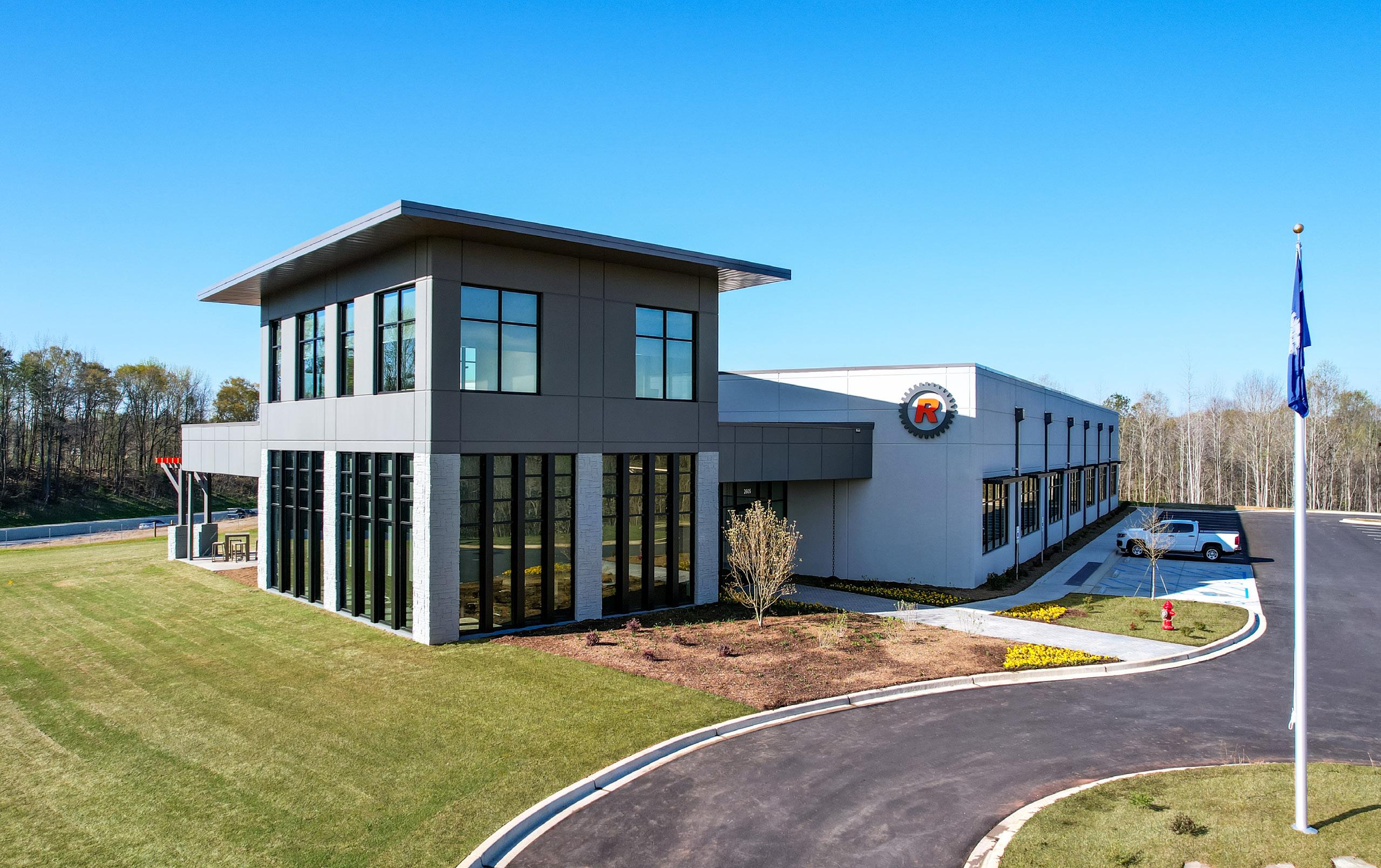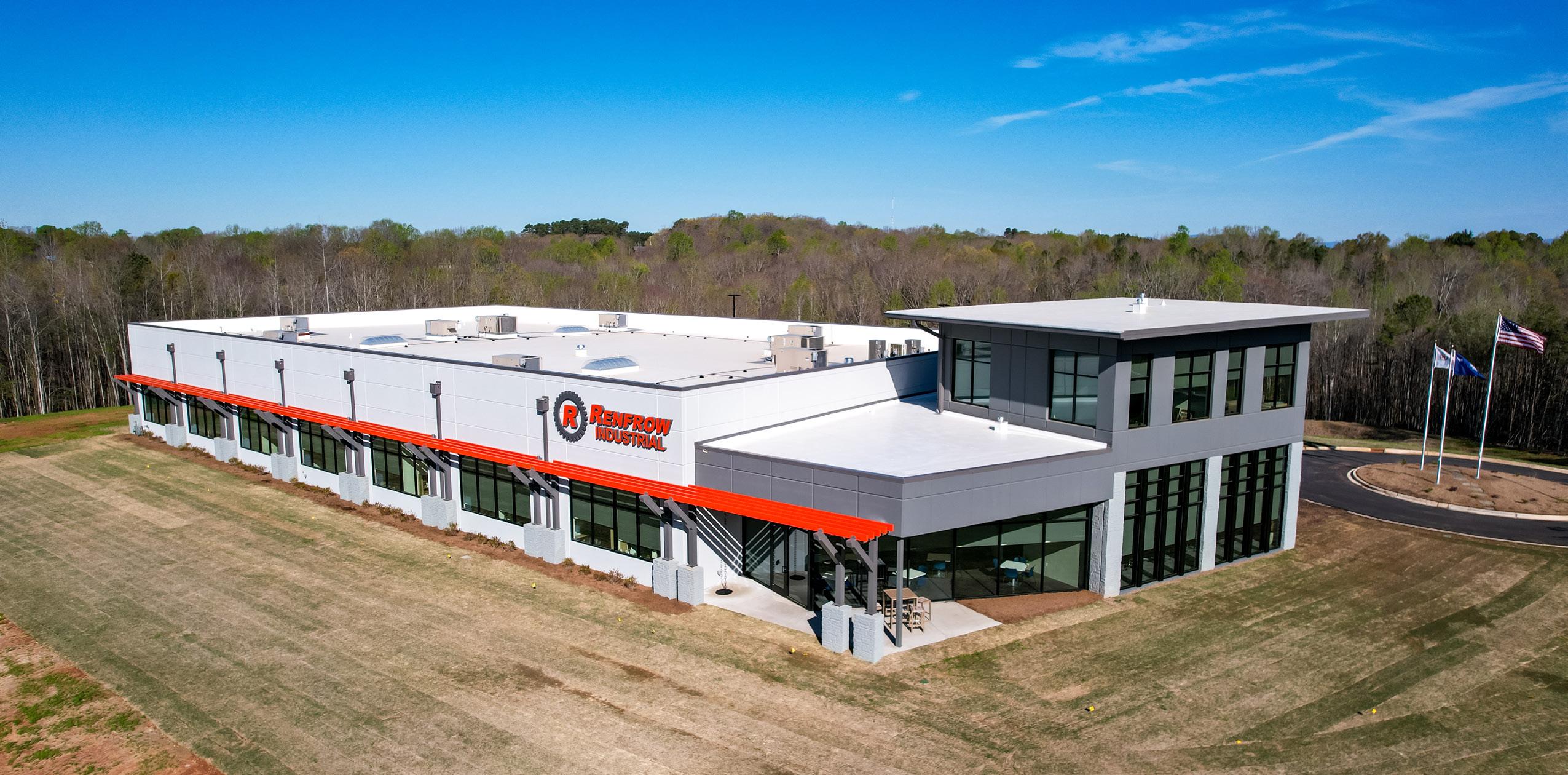 This new office marks the first building on Renfrow’s new campus park, aimed to consolidate multiple facility locations into a centralized campus.
