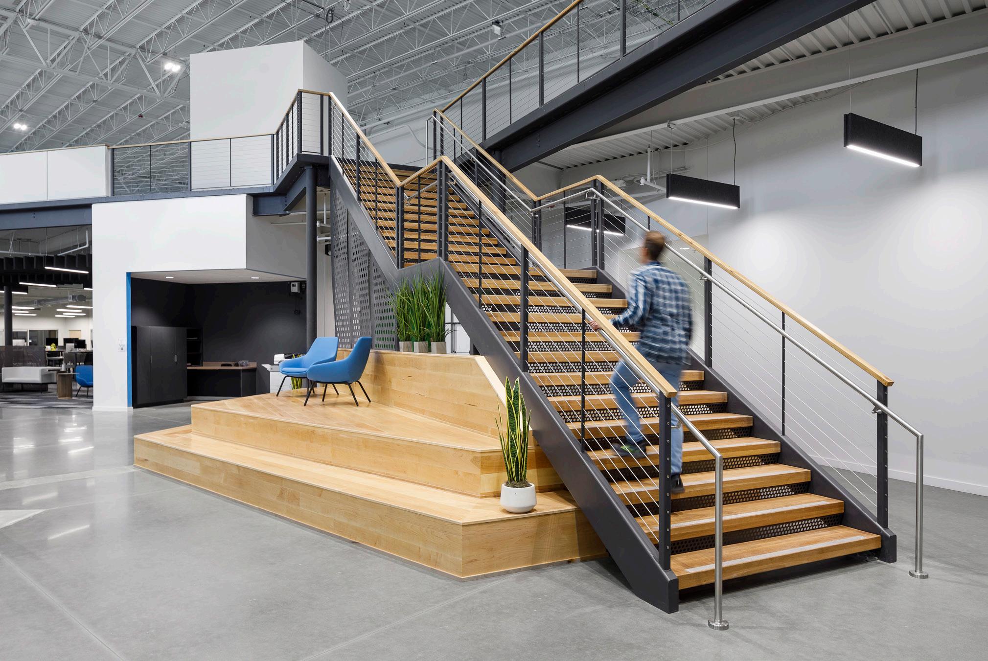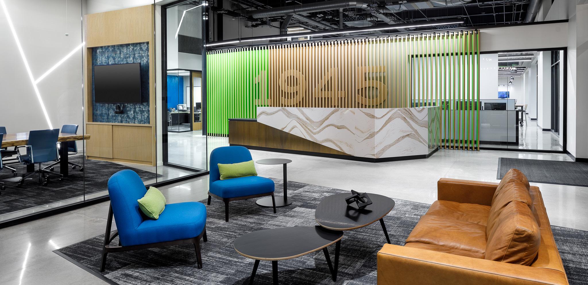Morgan Corp. Headquarters is a new, multi-story office building of approximately 23,000 SF, including a basement and a mezzanine of less than 3,000 SF. The space consists of conference rooms, executive offices, huddle rooms, open office space, and break rooms. The basement consists of a game room, storage and electrical rooms, server room, and a golf simulator for employee and client use. There are multiple conference rooms throughout the building that Morgan Corp. employees use for daily check-ins, project meetings, performance reviews, and more. The Morgan Corp. team has expressed appreciation for the number of meeting rooms in the building as their old building only had one conference room that had to be shared between employees. There is a large training room fully equipped with everything necessary to hold virtual and in-person meetings that Morgan uses for new team member orientation. A main conference room is located adjacent to the reception area and seats up to ten people. This building is a beautiful state-of-the-art facility that will serve as the base for all Morgan Corp. operations for many years to come.