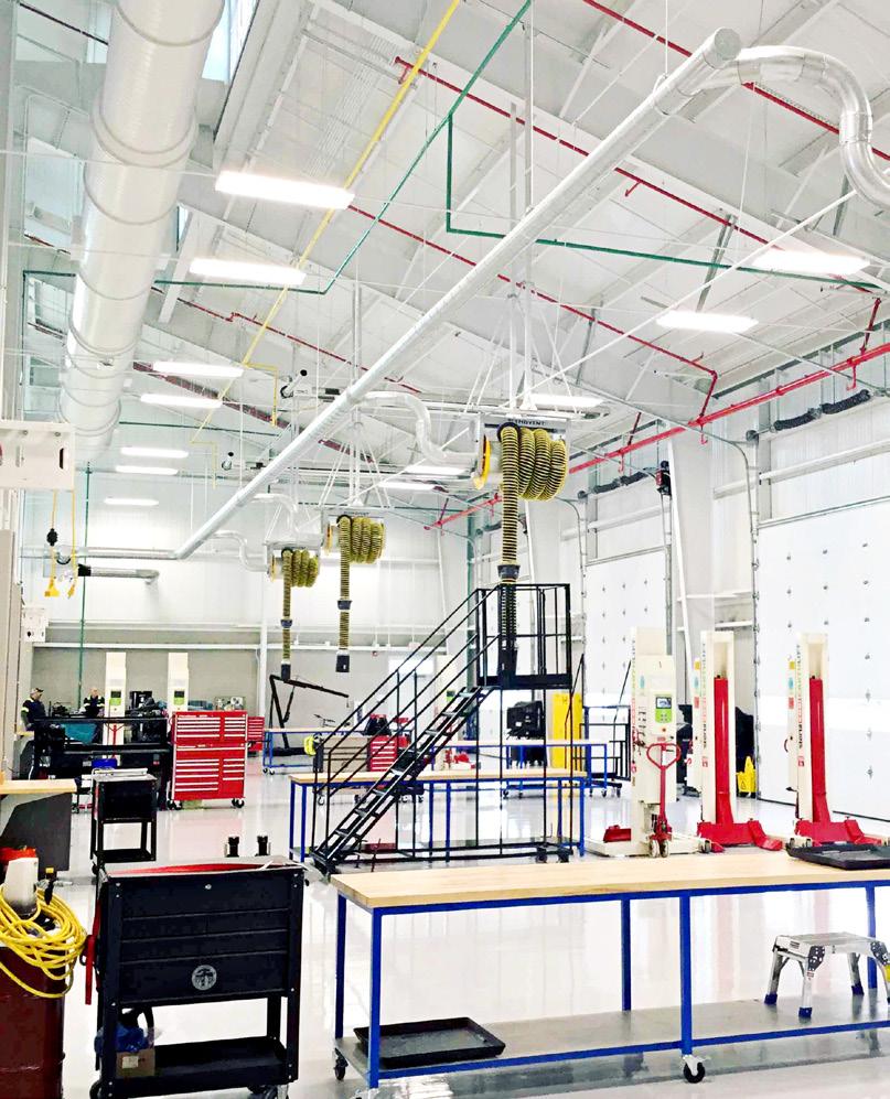 The exterior skin is combination of precast, CMU, storefront, and PEMB. Interior construction is metal studs, CMU, hard ceilings and ACT with sealed concrete floors. The 5,000 SF office area is metal studs, drywall, and LVT/carpet floor with lay in acoustical ceilings. There is one mile of compressed air piping. Test cells use 12” CMU that are reinforced and poured solid. Building included a special exhaust system for performance and endurance of small systems. Other areas of construction included gas bottle storage, cistern tank with pump and skid for recycled water, and air compressor room.