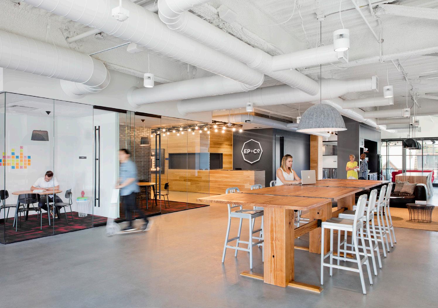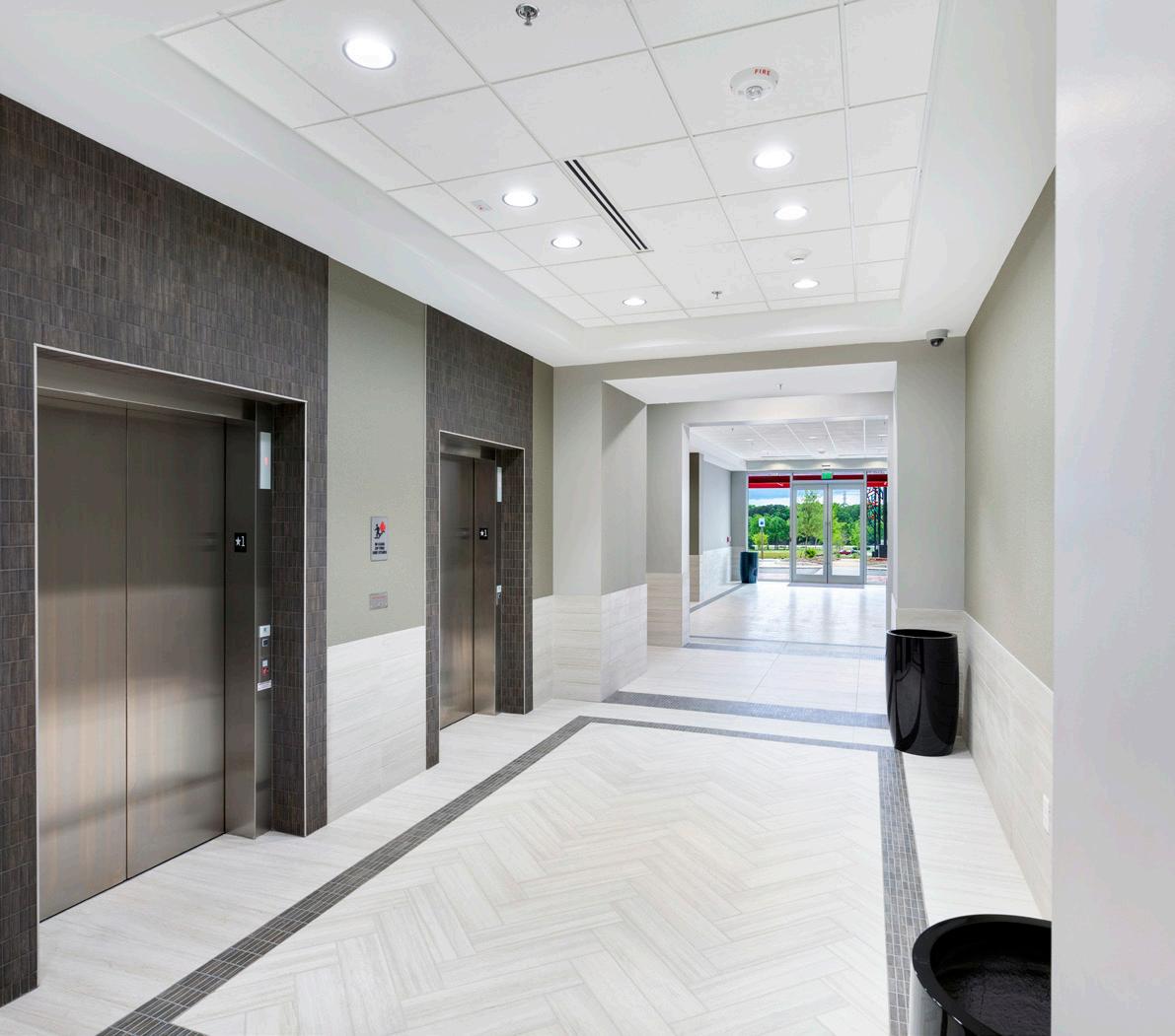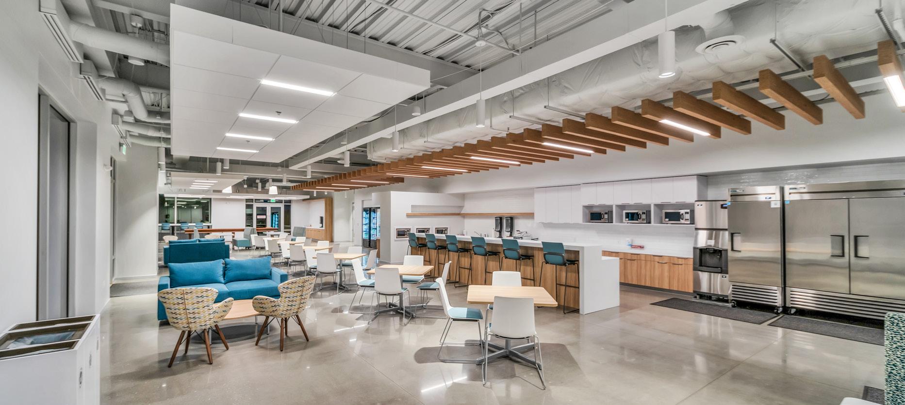 Distribution Center and Corporate Office: Combined, these two facilities include 90,000 SF. The Distribution Center (56,000 SF), consists of high bay racking systems and an extensive loading dock. The corporate office is a twofloor facility that consists of 30,000 SF of Class-A office space. Included are a variety of open work spaces, a monumental stair and pre-function, an exercise room, and a large meeting room with AV for training and company functions.