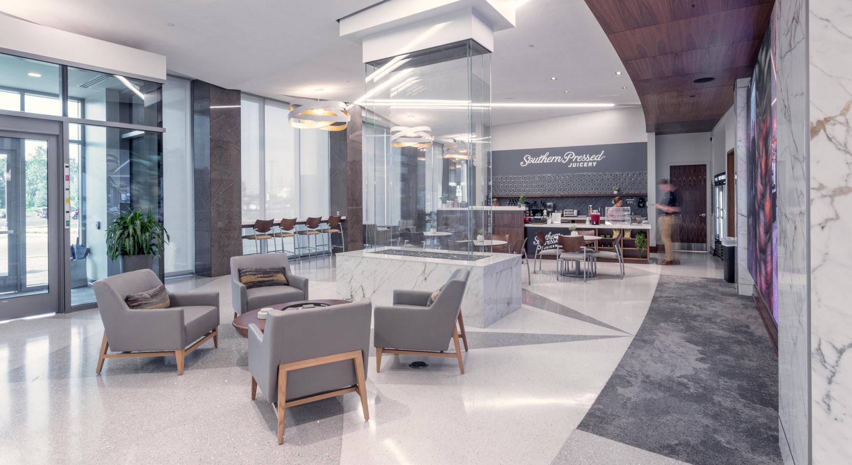 boutique retail stores and dining, and the second floor has offices topped with 63 high-end residential apartments.